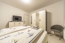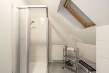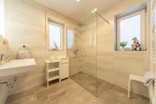 Es verfügt ebenfalls über voll ausgestattete Schlafzimmer mit jeweils einem Doppelbett. (Inkl. Außenrolläden und Plisses). Die Dusche im Bad ist bodeneben und somit barrierefrei. - Das WC ist hiervon getrennt.