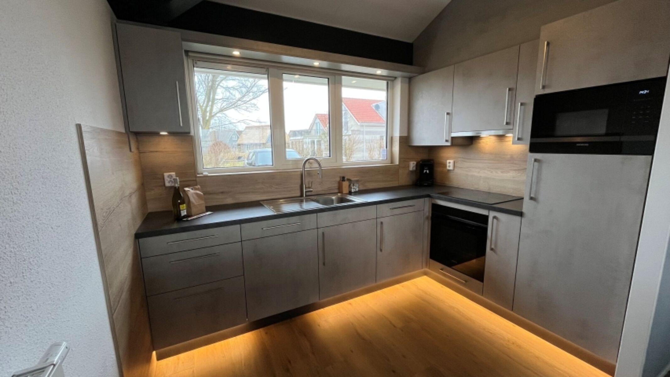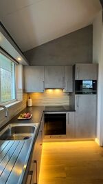 Die Küche ist komplett ausgestattet mit Spülmaschine, Backofen, Mikrowelle, Wasserkocher, Toaster, Kaffeemaschine und Senseo-Padmaschine, elektrische Fruchtpresse, Milchaufschäumer, Mixer und Pürierstab. Geschirr, Gläser, Kochutensilien usw. sind umfangreich vorhanden.