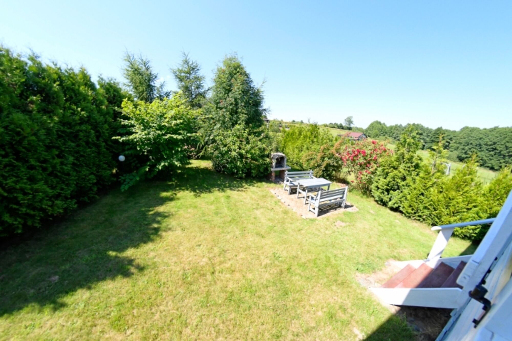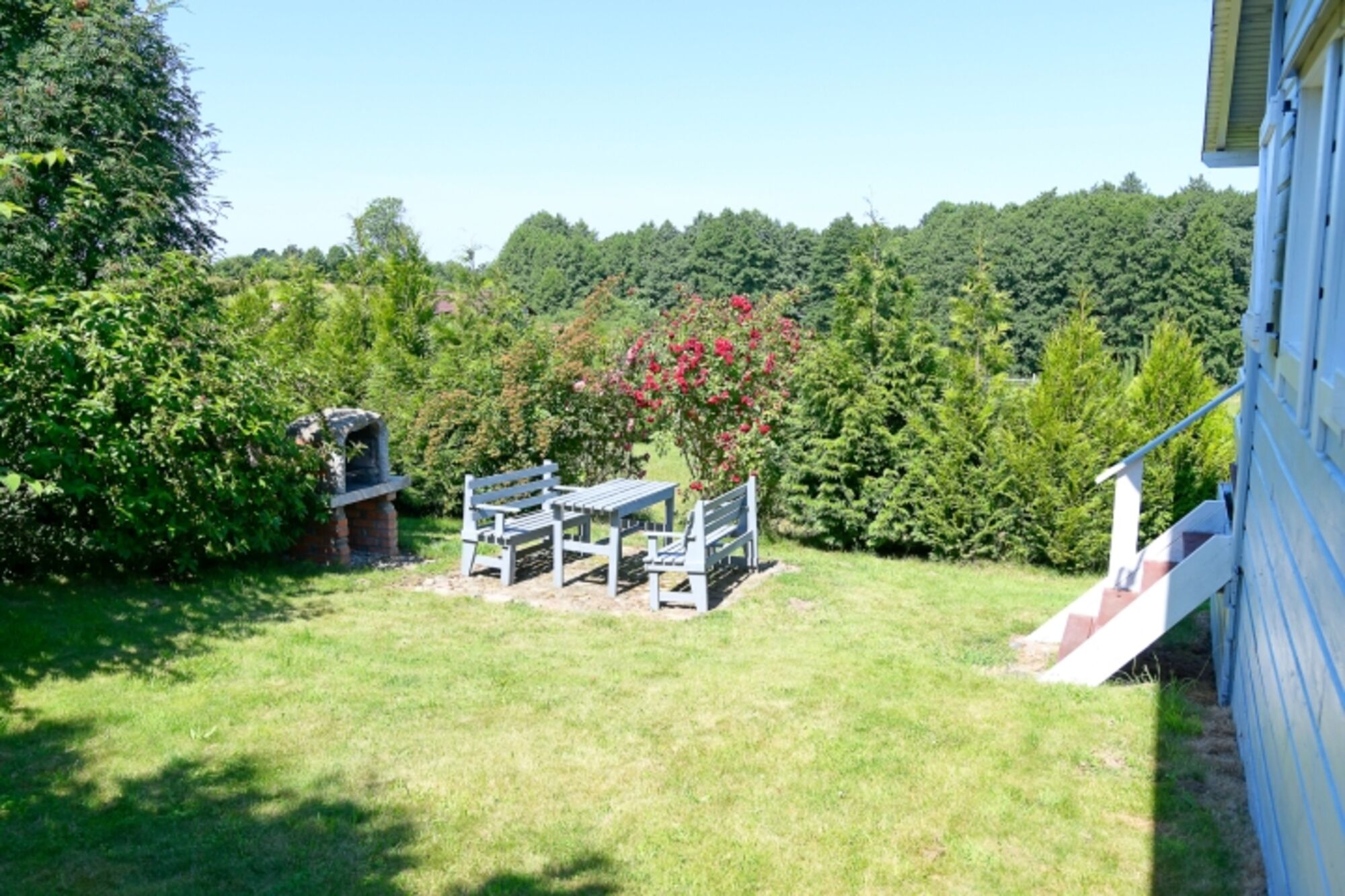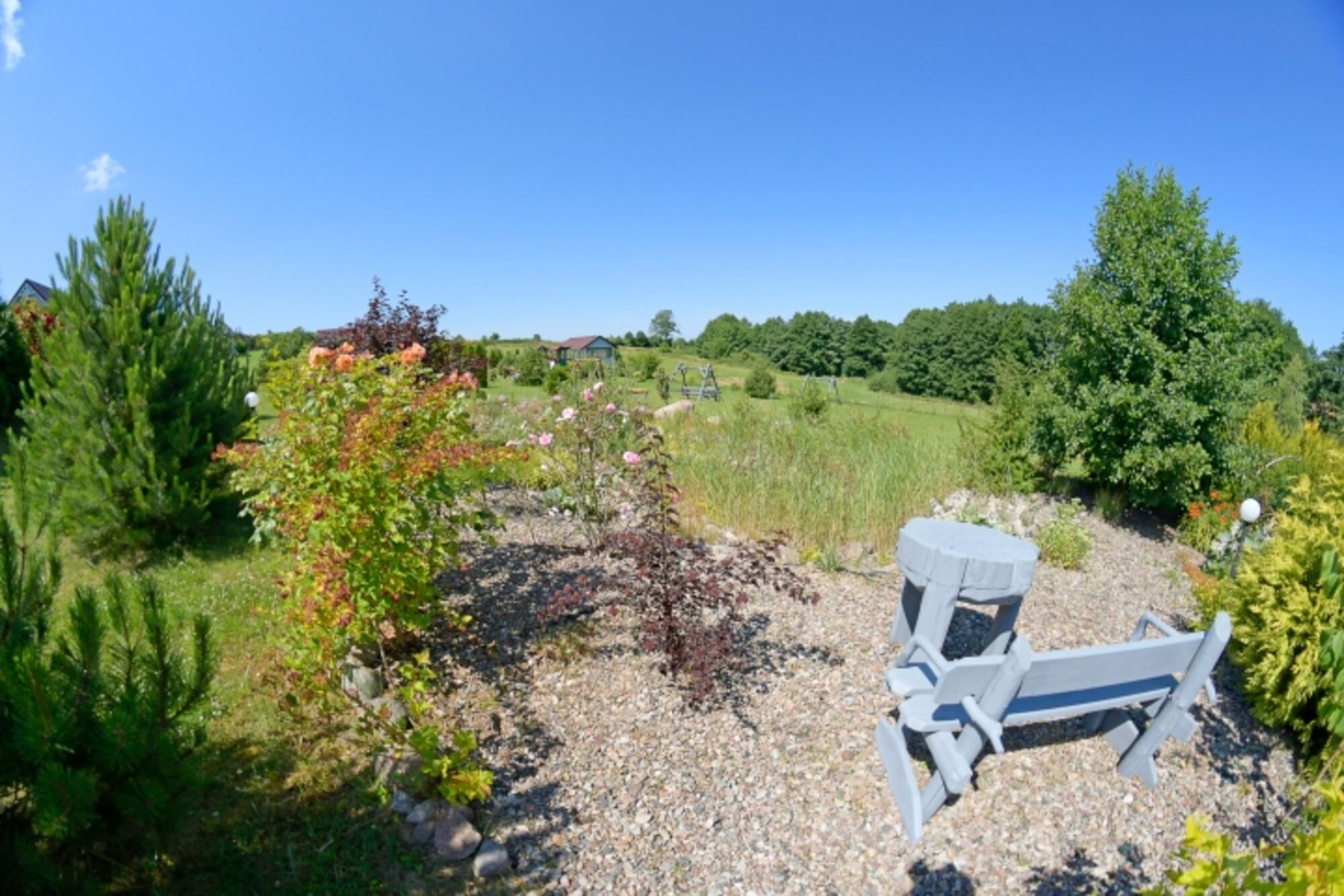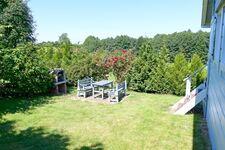Liegewiese, Gartenmöbel, Kohlegrill, Bänke, Hof