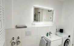 Zudem befindet sich hier eine Infrarotkabine (keine klassische Sauna), sowie eine Waschmaschine.