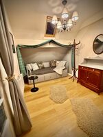 Das Bett ist mit einer Emma Matratze ausgestattet. Im Raum befindet sich auch ein stummer Diener. Unter dem Bett sind noch zwei geräumige Schubladen. Die Steckdosen verfügen auch über USB Lademöglichkeit. Die Rolläden sind elektrisch. Doppelbett 1,60 x 2,00m, Spiegel, Leselampe am Bett, Fliegengitter