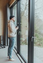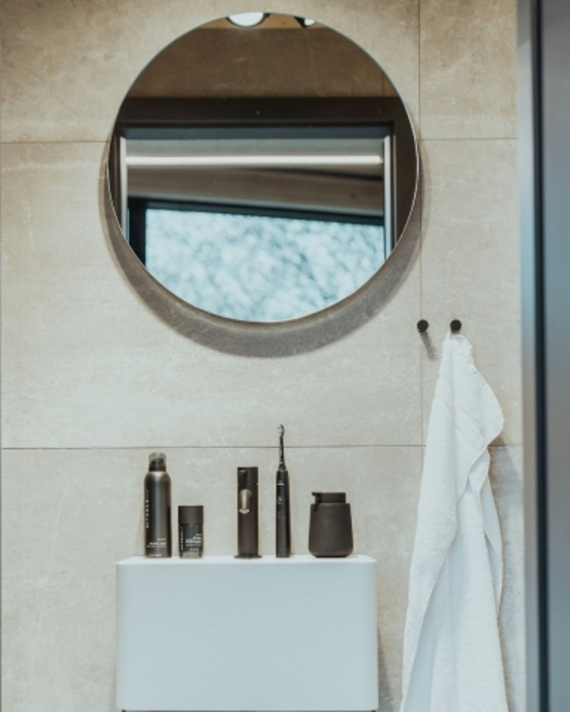 Den fließenden Übergang ins Grüne bewundern Sie nicht nur bequem vom Sofa aus, sondern sogar beim Duschen, wobei Sie dank Spiegelglas vor anderen Blicken geschützt sind.