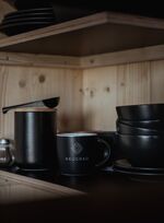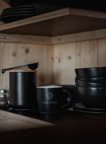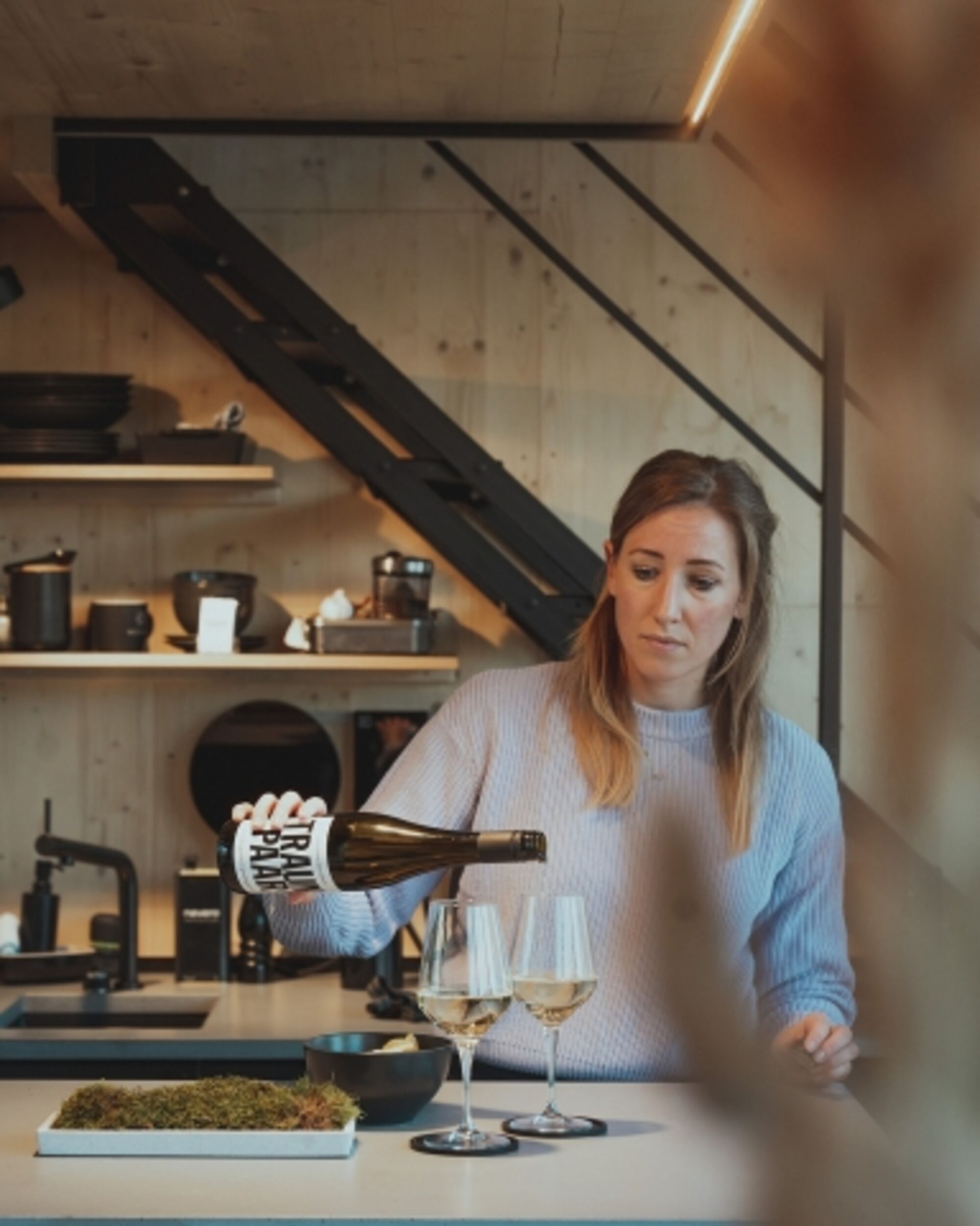 Die voll ausgestattete Küche lädt zum feinen Kochen ein; genießen können Sie es am stylischen Bistrotisch aus Beton oder auf der eigenen Terrasse.