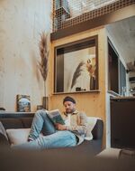 SMART-TV, Hi-Fi-Anlage mit Bluetooth, Bücher, 2er-Sofa