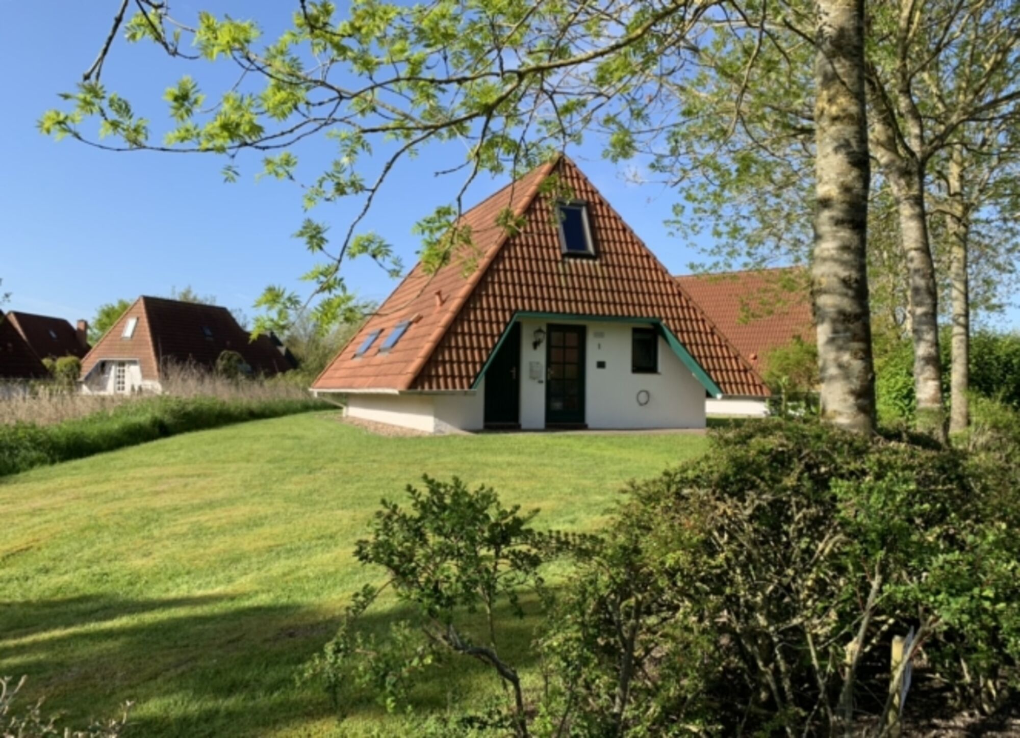 Zum Strand sind es ca. 700 Meter durch eine schöne Ferienhaussiedlung. Verschiedene Restaurants, ein toller Bäcker sowie ein kleiner Lebensmittelladen sind vor Ort (ca. 400 Meter entfernt. Ein Fahrradverleih ist 100 Meter entfernt. Das Wattenbad am Strand ist ein Wellenbad, was vor allem bei Kindern Begeisterung auslöst.