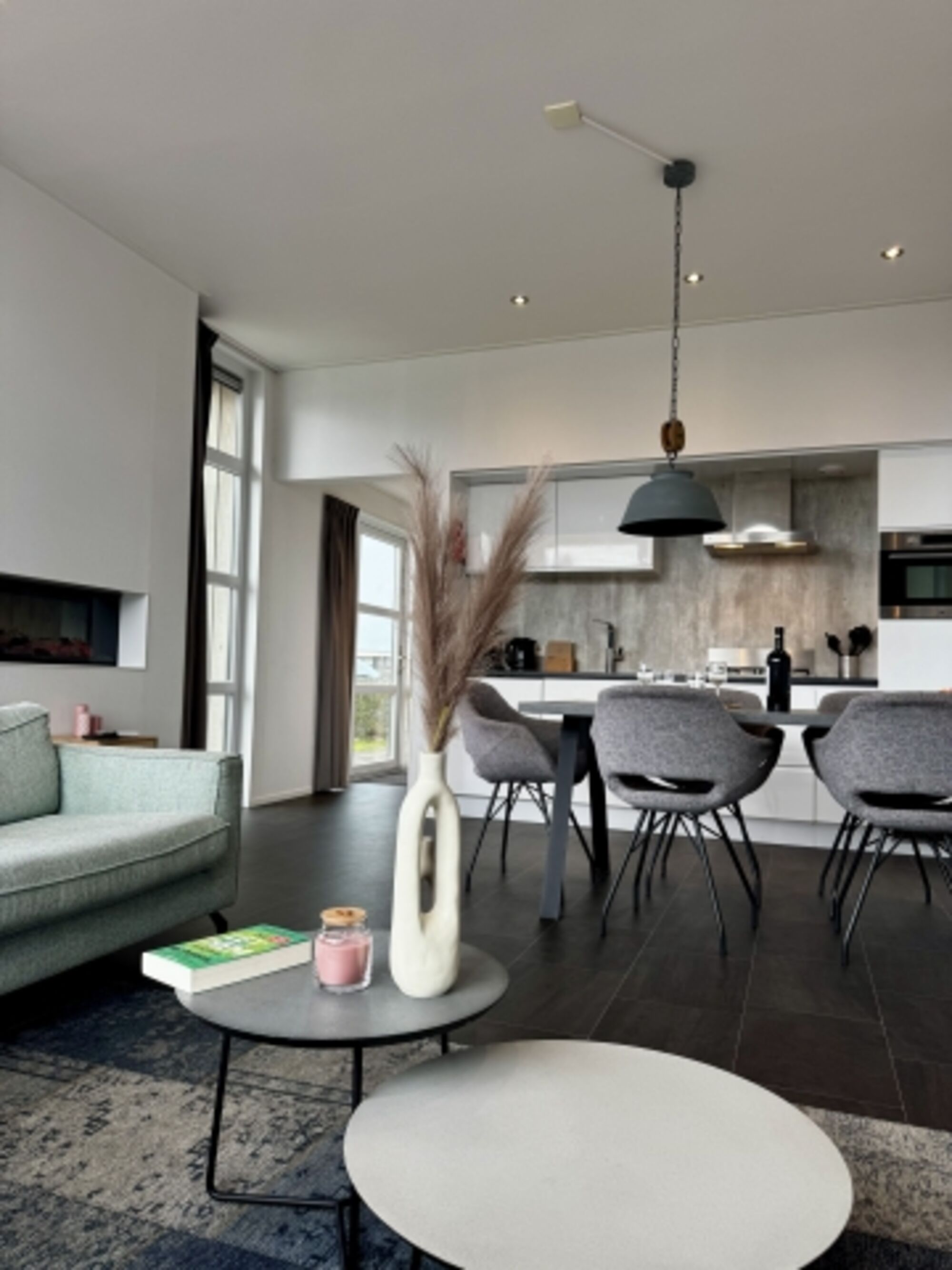 Große Glasflächen, erhöhte Decken und eine elegante Architektur schaffen ein lichtdurchflutetes, offenes Ambiente. Im gemütlichen Wohnbereich kannst Du abschalten, den Blick nach draußen genießen und entspannte Abende verbringen. Ein TV mit deutschen Sendern sowie schnelles WLAN sorgen für zusätzlichen Komfort.