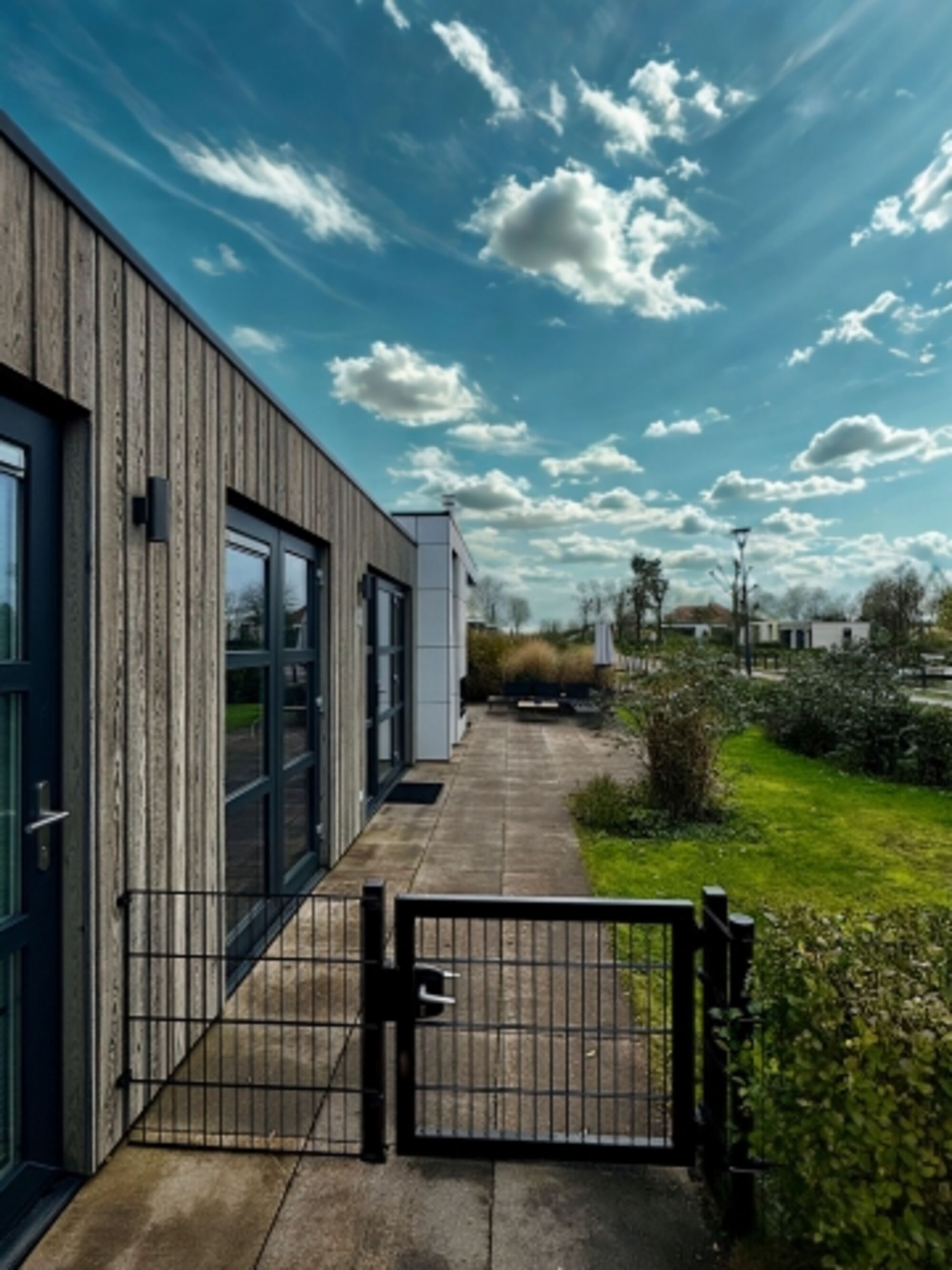 NEU: jetzt mit Zaun Premiumchalet mit Sonnenterasse direkt am Ijsselmeer