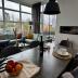 Die offen gestaltete Küche ist hochwertig ausgestattet und lässt keine Wünsche offen: Senseo-Kaffeemaschine, Geschirrspüler, Kombigerät aus Mikrowelle & Backofen, Großer Kühlschrank mit Gefrierfach, Wasserkocher & umfangreiche Küchenutensilien.