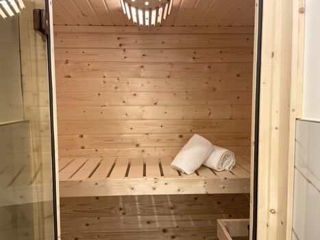 Einer der Höhepunkte dieser Ferienwohnung ist der luxuriöse Wellnessbereich. Gönnen Sie sich eine Auszeit in der eigenen Sauna oder entspannen Sie im Whirlpool. Das Badezimmer ist modern gestaltet und bieten sowohl eine Dusche als auch eine Badewanne mit Whirlpoolfunktion, damit Sie nach einem erlebnisreichen Tag am Strand zur Ruhe kommen können.