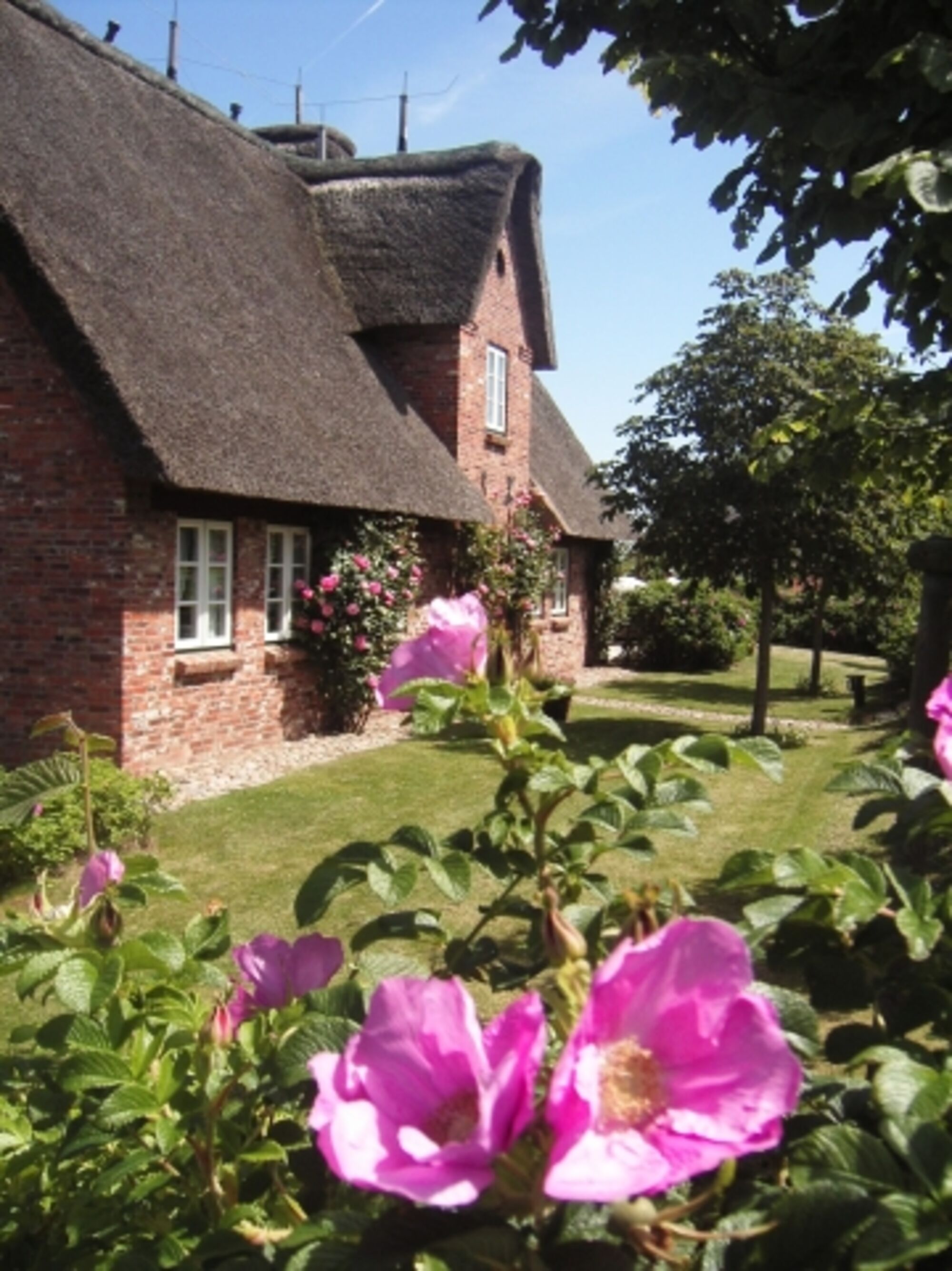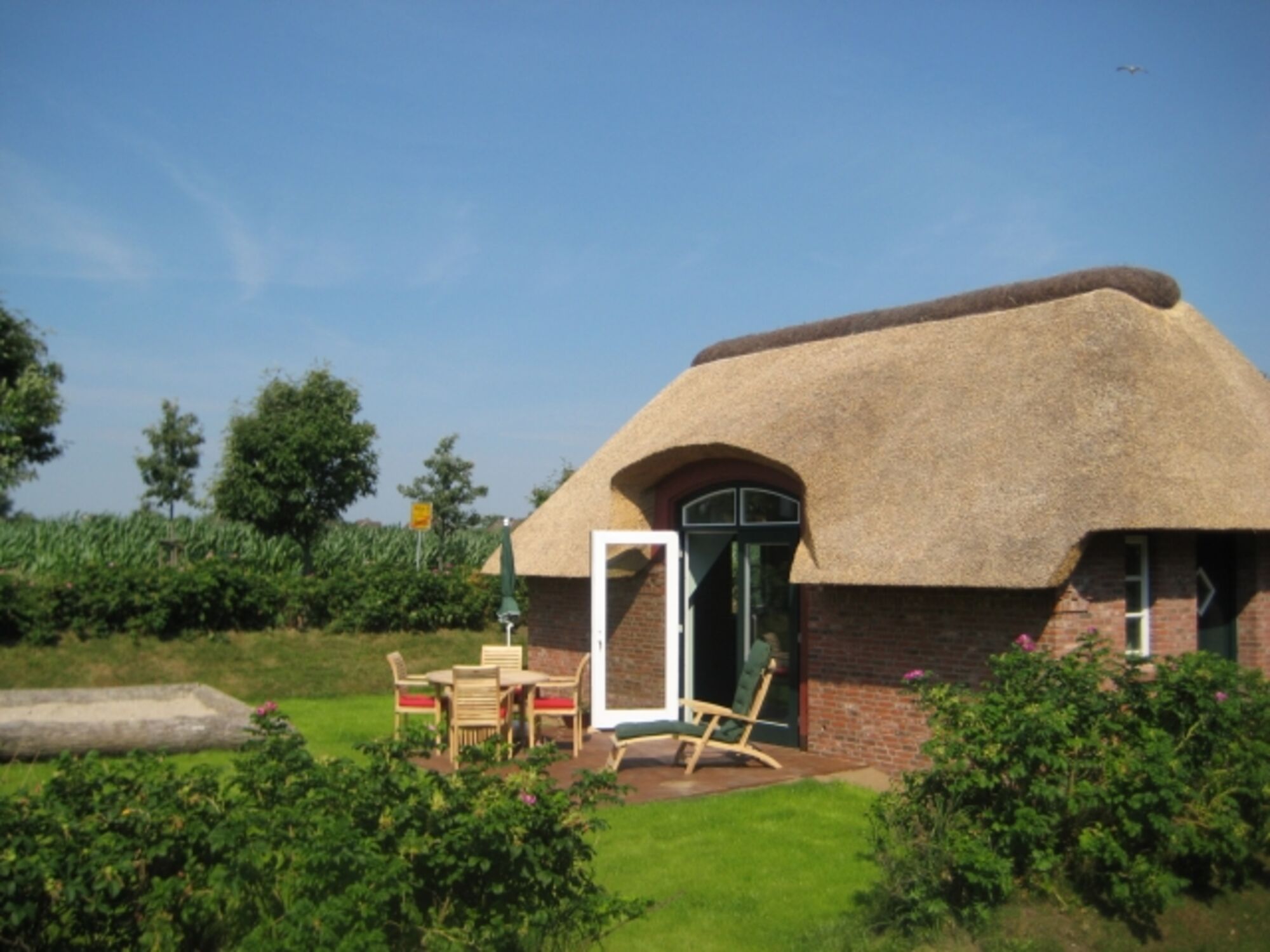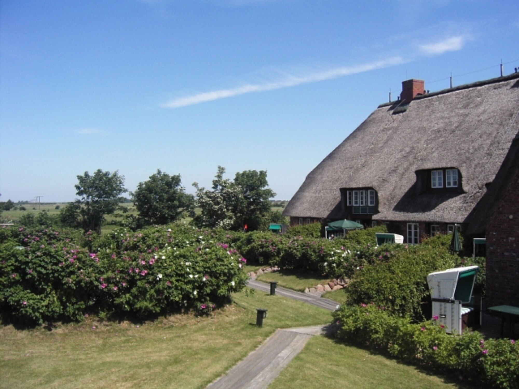 Die Wohnung erreichen Sie über einen separaten Eingang. Alle Wohnungen haben einen durch Heckenrosen von den Nachbarn abgeschirmten Garten mit Terrasse, Strandkorb und Gartenmöbeln.