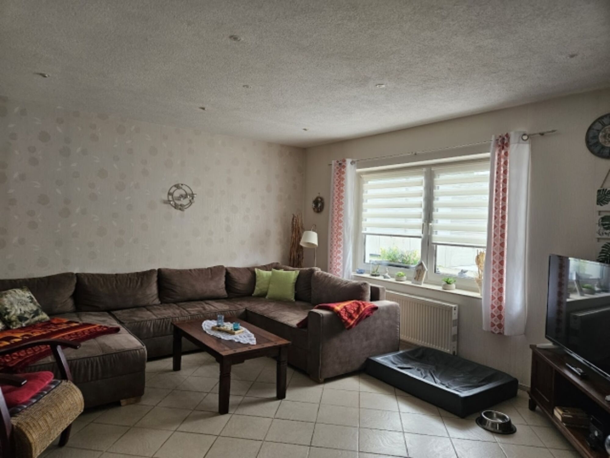 TV-Kabel, SMART-TV, TV-Flachbildschirm, HDTV Flachbildschirm, Bücher, Eckcouch, Sessel