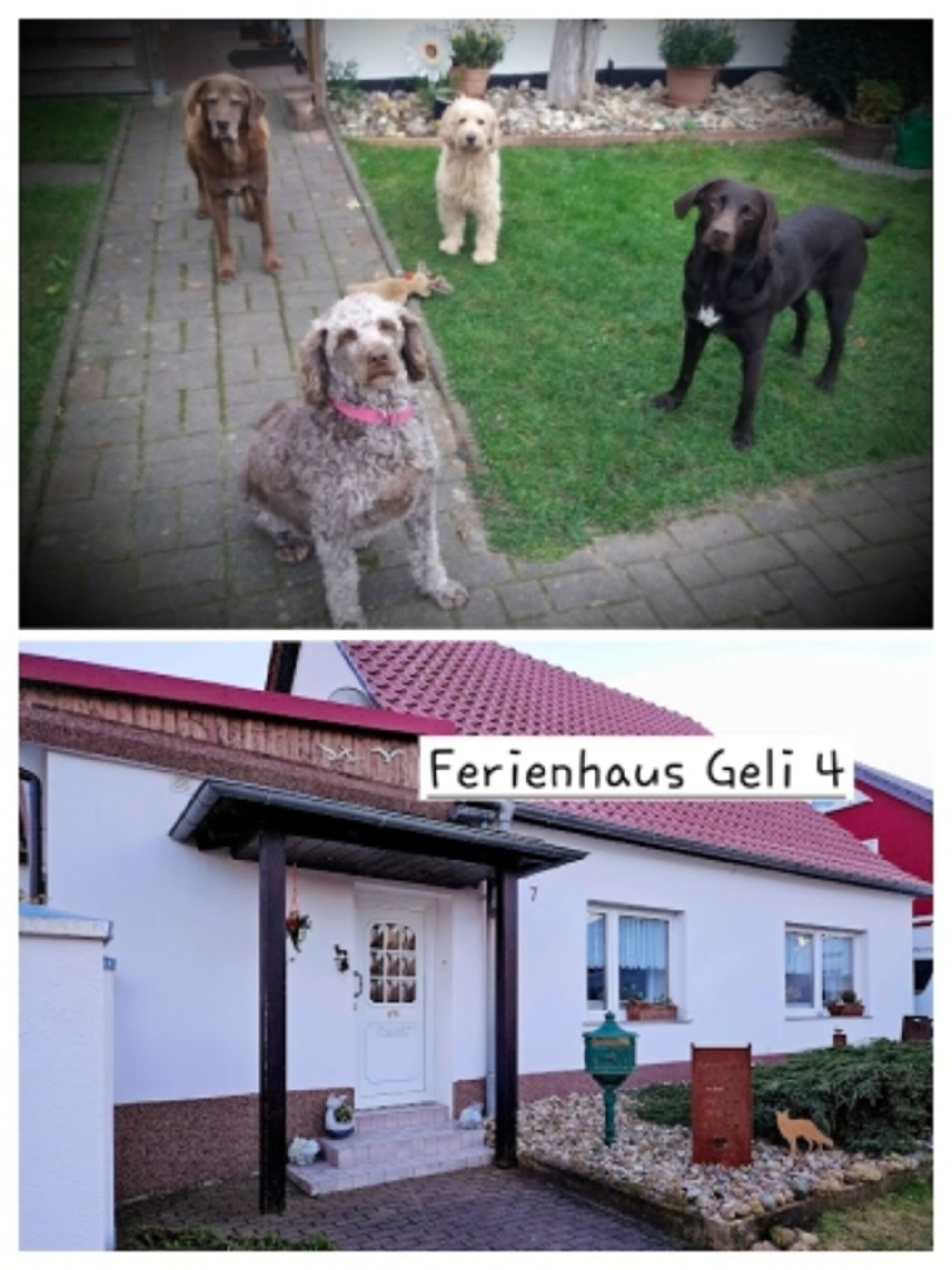 | Ausstattung für Hunde: | Hunde wohnen kostenfrei Hundebademöglichkeit in der NäheHundedecke / Hundekorb Hundespaziergang vom Haus aus möglich Umfriedetes Grundstück (komplett mit Zaun) Zaunhöhe bis 1,50 Meter |