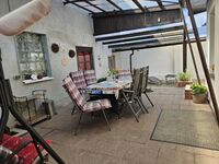 In der Küche fehlt es an nichts, selbst Eierkocher, Knoblauchpresse, Kuchenbackformen sind vorhanden. Aus der Küche gelangen Sie direkt auf die große komplett überdachte Terrasse mit Grill. Diese ist auch von innen verschließbar und für Ihre alleinige Nutzung bestimmt.