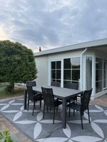 Unsere teilweise überdachte Terrasse ist windgeschützt und mit einem Tisch und 6 Stühlen und einem Sonnenschirm ausgestattet. Durch den L-förmigen Schnitt bietet sie zu jeder Tageszeit Sonne oder Schatten. Die Lounge Ecke lädt zum Relaxen ein. So können auch regnerische Tage einen gemütlichen Ausklang.
