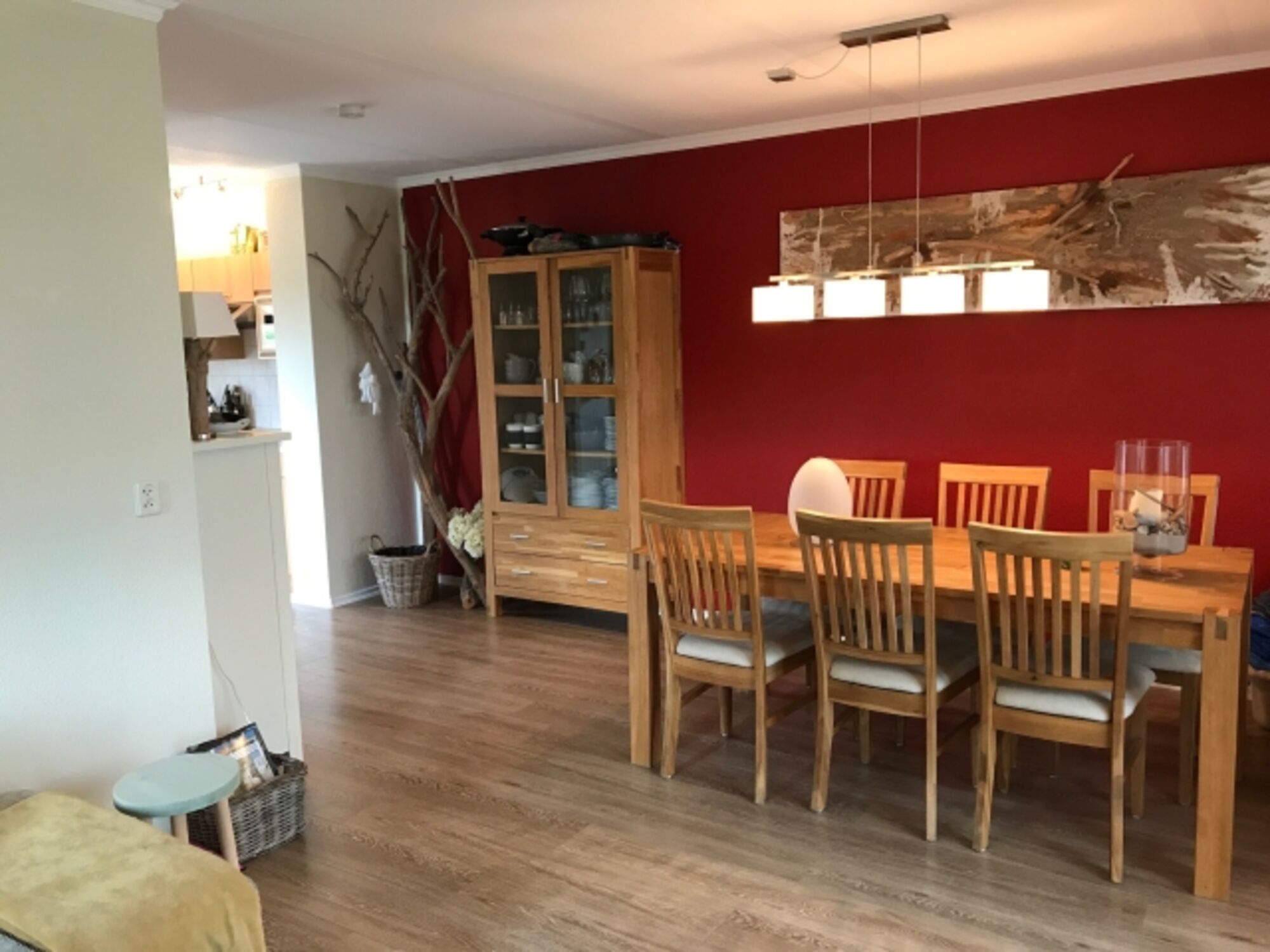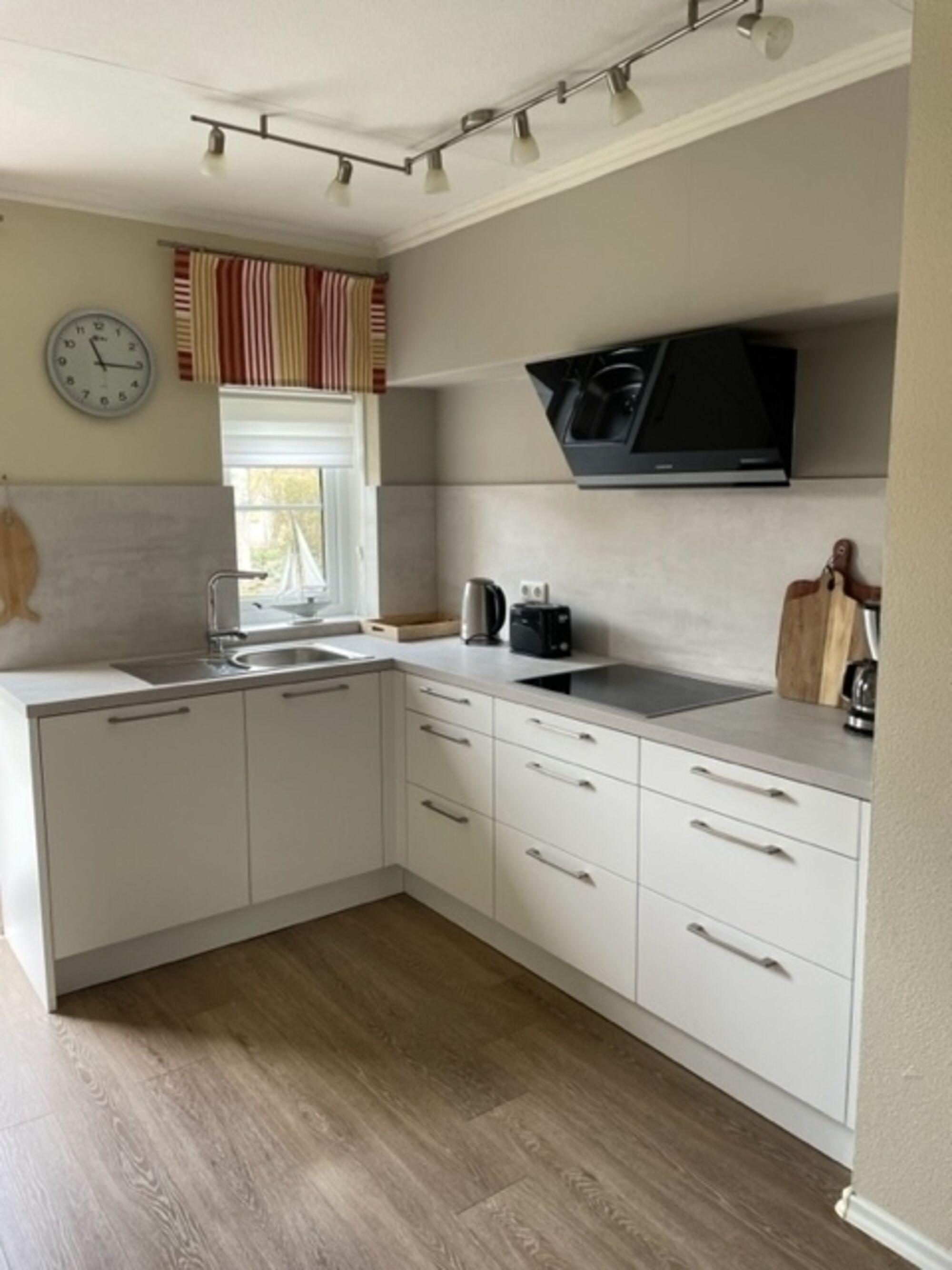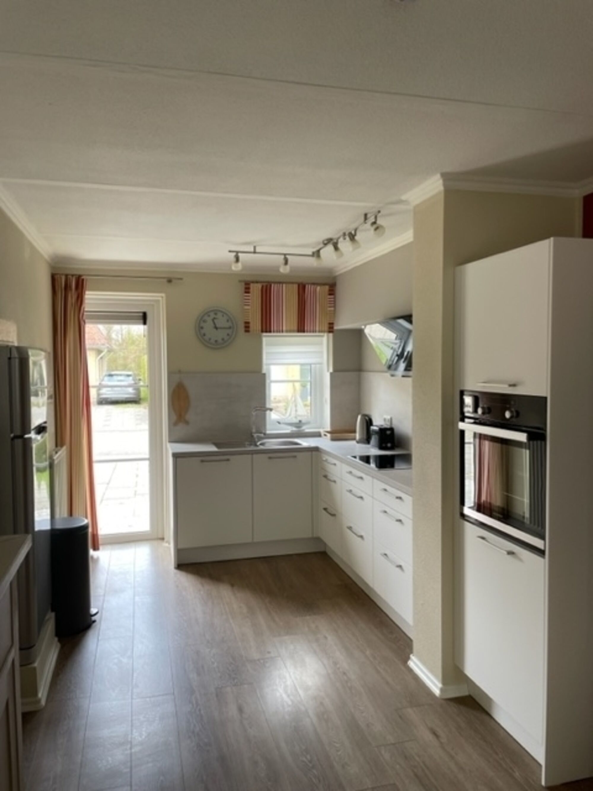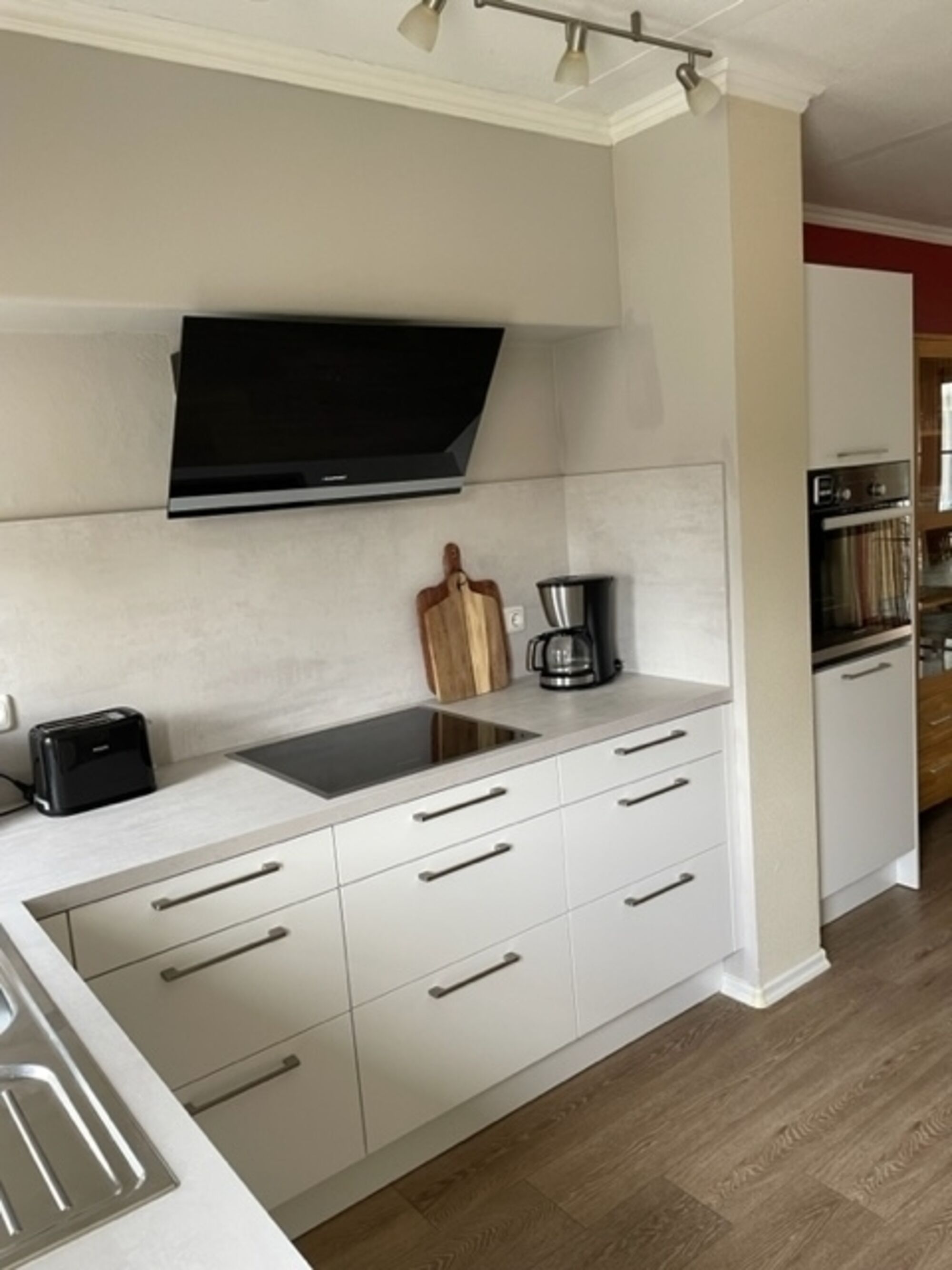 Die moderne, neu gestaltete Küche ist mit hochwertigen Geräten ausgestattet, inklusive großem Kühlschrank mit Gefrierfach – perfekt für die Zubereitung Ihrer Lieblingsgerichte. Das Haus ist mit pflegeleichtem Laminatboden versehen und lässt sich einfach sauber halten.