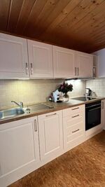 4-Platten Herd, Cerankochfeld, Dunstabzugshaube, Kühlschrank mit Gefrierfach, Gefrierschrank, Nespresso-Automat, Korkenzieher / Flaschenöffner, Gewürze (Salz, Pfeffer, Zucker), Geschirrhandtücher, Mülltüten, Essplatz in der Küche