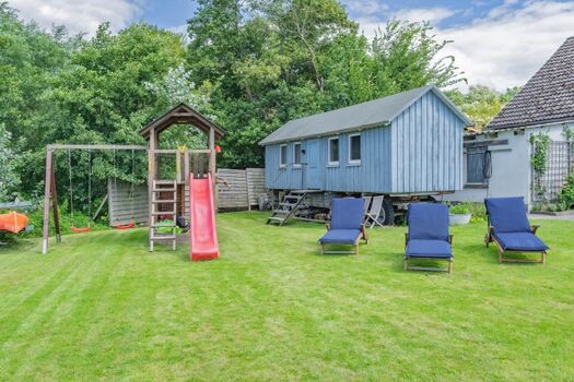Es verfügt über vier Schlafzimmer für 10 Personen – drei Doppelzimmer und ein Familienzimmer mit Doppelbett und Doppelstockbett. Zusätzlich steht ein Bauwagen als gemütliche Schlafmöglichkeit für weitere 4 Personen (2 Erwachsene, 2 Kinder) im Garten zur Verfügung (ohne WC - hier muss das Haupthaus genutzt werden). Im Sommer, wie Winter nutzbar.