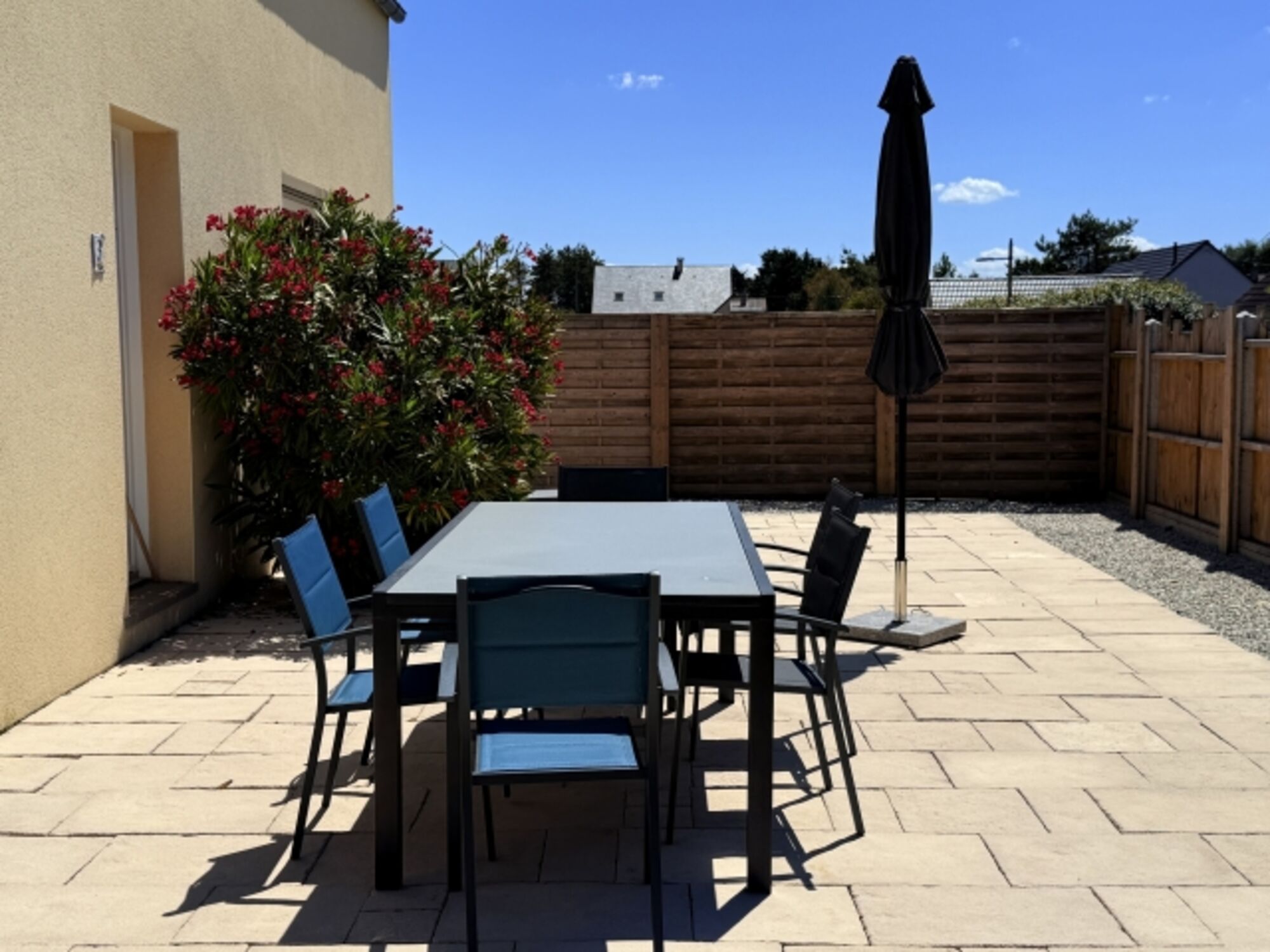 Das Grundstück ist komplett eingezäunt. Vor dem Haus befindet sich ein privater Parkplatz.