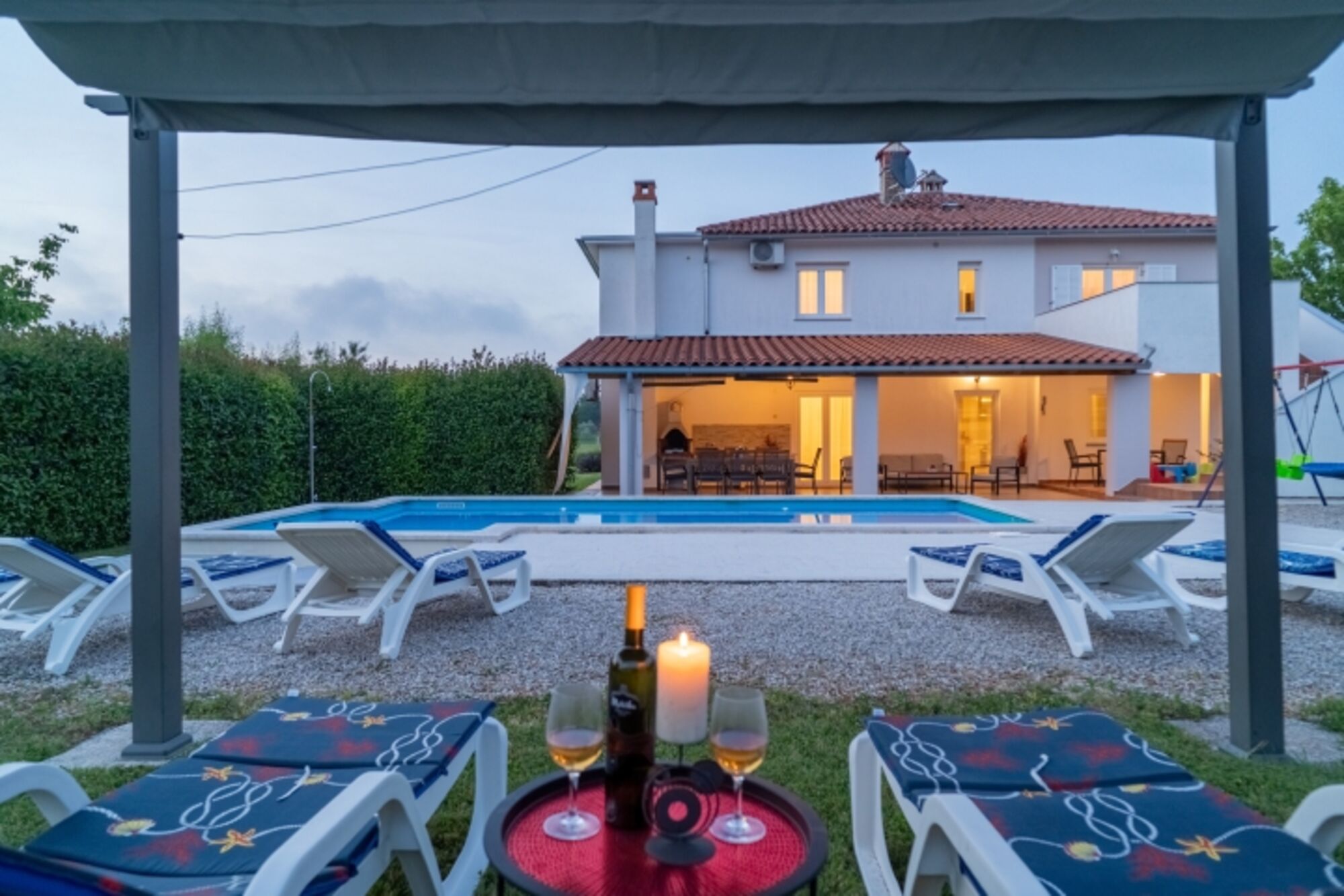 In der Umgebung der Villa befindet sich das mittelalterliche Städtchen Barban, bekannt für die traditionelle Veranstaltung „Trka na prstenac“ – eine wunderbare Gelegenheit, lokale Kultur und Bräuche kennenzulernen. Für Tagesausflüge empfehlen wir einen Spaziergang durch die charmanten Gassen von Rovinj oder den Besuch der antiken Stadt Pula mit ihrem berühmten Amphitheater und zahlreichen kulturellen Highlights.