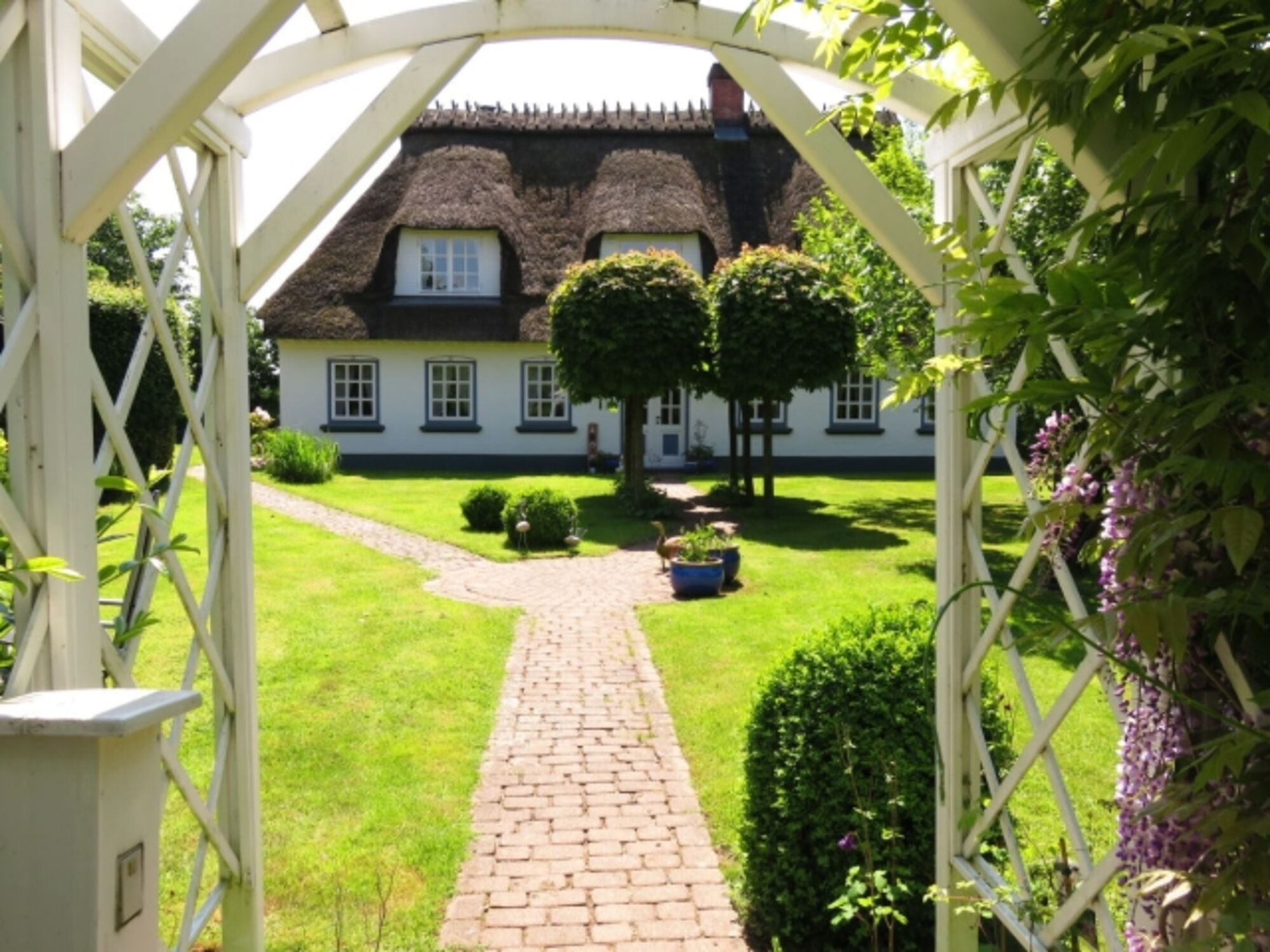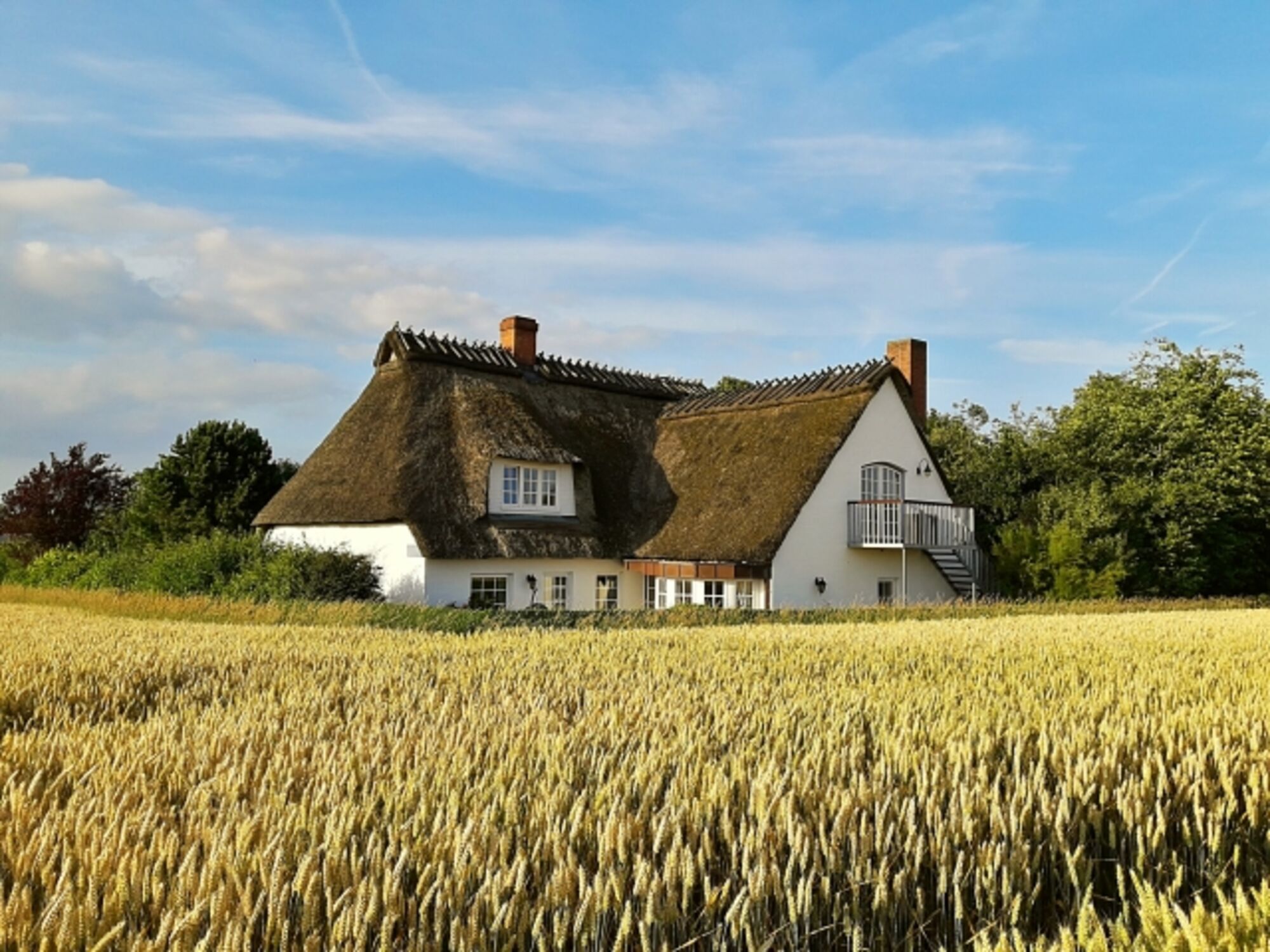 Urlaub unter schönem Reetdach mit Feldblick