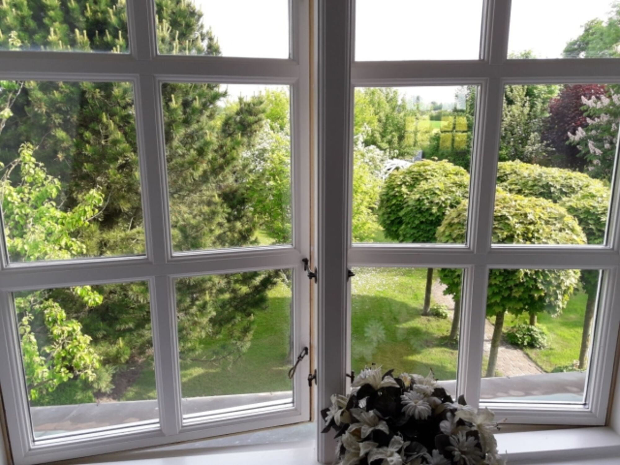 Waschbecken, Spiegel, Fenster im Bad