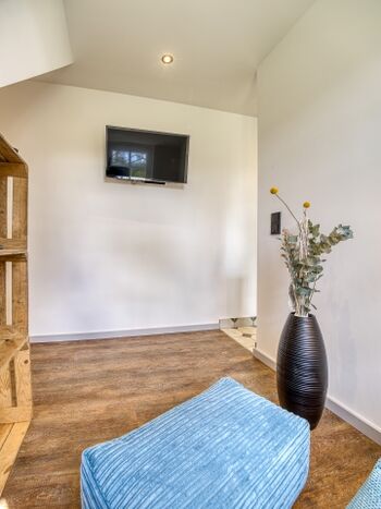 Die sorgfältig ausgewählten Möbel und Accessoires im offenen Wohn- Küchenbereich mit Schlafcouch und Gäste WC im EG sowie dem großzügigen Duschbad im Obergeschoss lassen keine Wünsche offen.