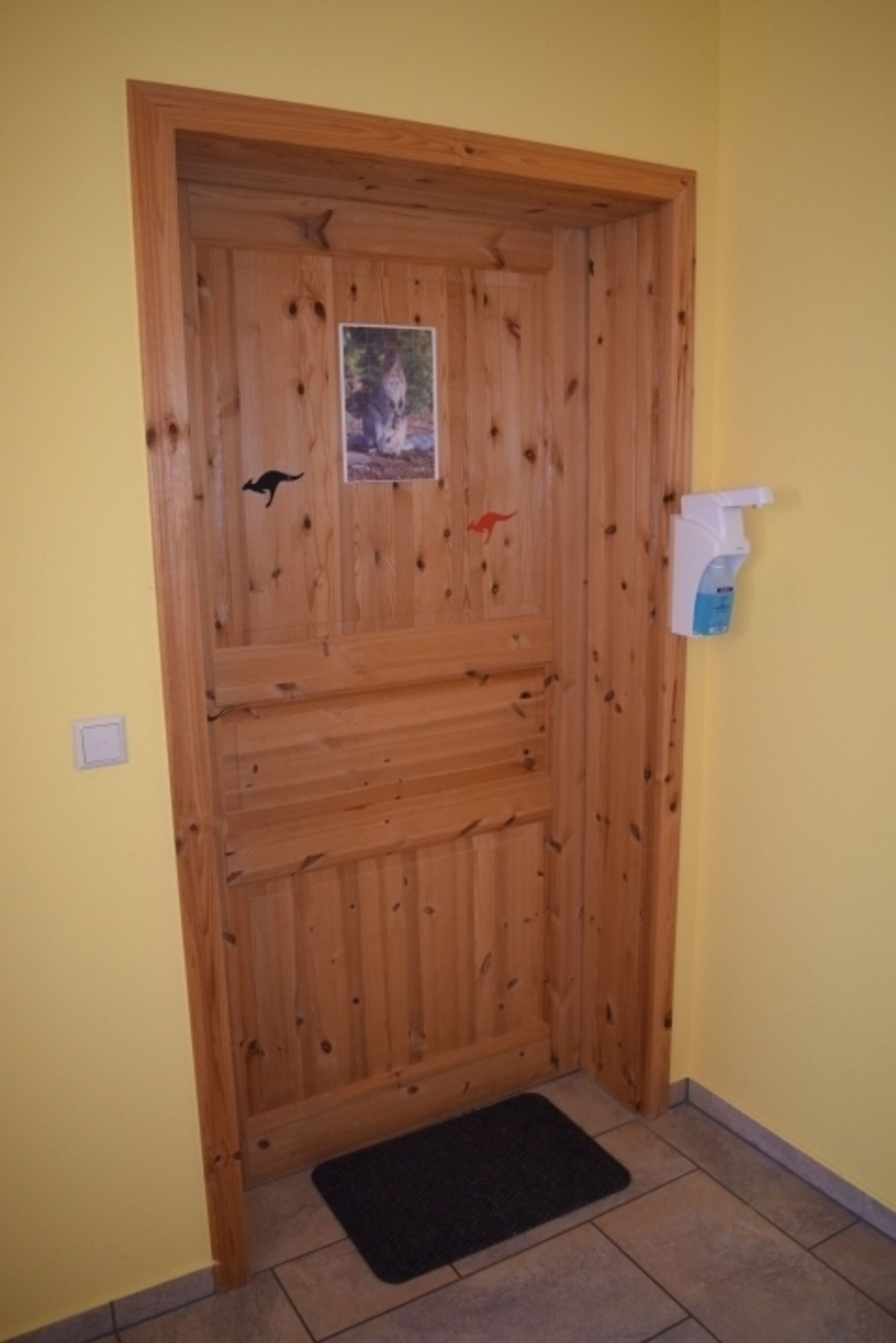 Die Fewo "Känguru" gehört zum Gästehaus des Thürmer-Hofs und hat nicht nur einen Blick zum Känguru-Gehege sondern auch auf eine große Wiese mit Spielplatz, die von Hund und Mensch genutzt werden kann. Mehrere, auch große Hunde sind bei uns herzlich willkommen, können auf dieser großen, umzäunten Wiese herumtollen und reisen kostenlos mit.