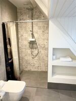 Das moderne Badezimmer bietet eine herrliche Regendusche sowie eine Waschmaschine – ideal für längere Aufenthalte. Auf Wunsch können Sie Handtücher und Bettwäsche bequem bei uns mieten.