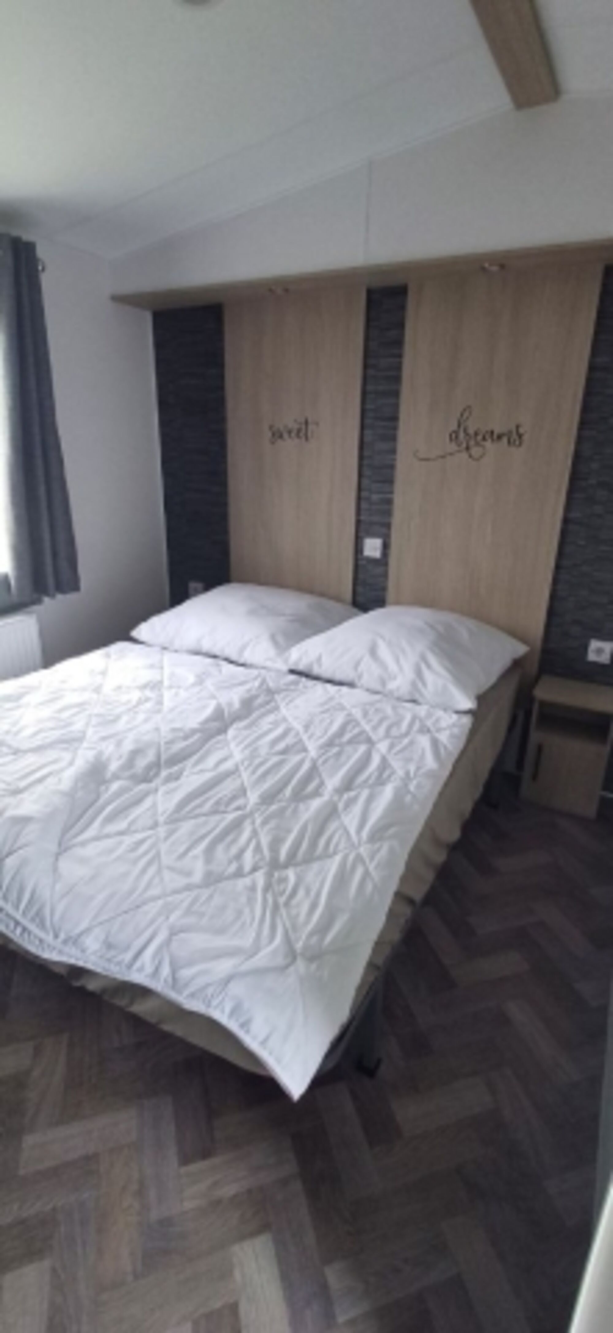 Jedes Bett ist mit einem Hygieneschutzbezug ausgestattet. Die Maße der Betten, Bettdecken und Kissten erhalten Sie bei Buchung in der Bestätigungsmail.