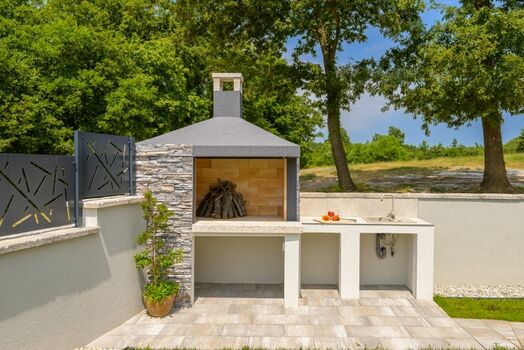 Der nächste Strand befindet sich im malerischen Ort Bale, nur 20 km entfernt, mit unberührten Buchten und kristallklarem Wasser. Die Villa liegt außerdem ganz in der Nähe von Svetvinčenat und seinem beeindruckenden Kastell Morosini-Grimani – ein kulturelles Highlight, das einen Besuch wert ist.
