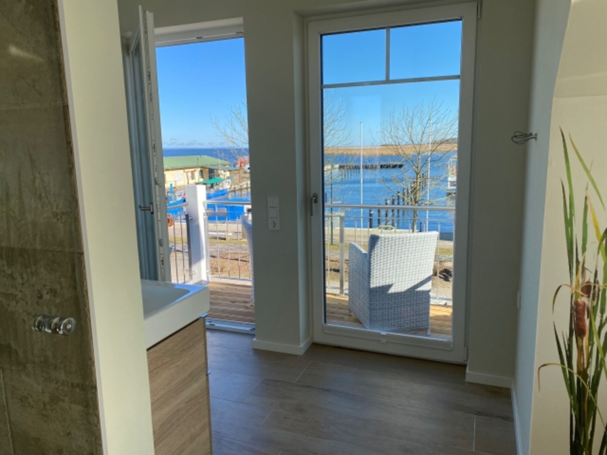 Von hier aus hast du einen einzigartigen Wasserblick auf das Stettiner Haff. Morgens wecken dich Möwenrufe, abends genießt du den Sonnenuntergang und das beruhigende Plätschern der Boote. Große Fensterflächen holen die Natur direkt ins Haus.