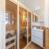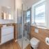 Ein modernes Badezimmer mit bodengleicher Dusche, WC und Sauna sorgen für besonderen Komfort.