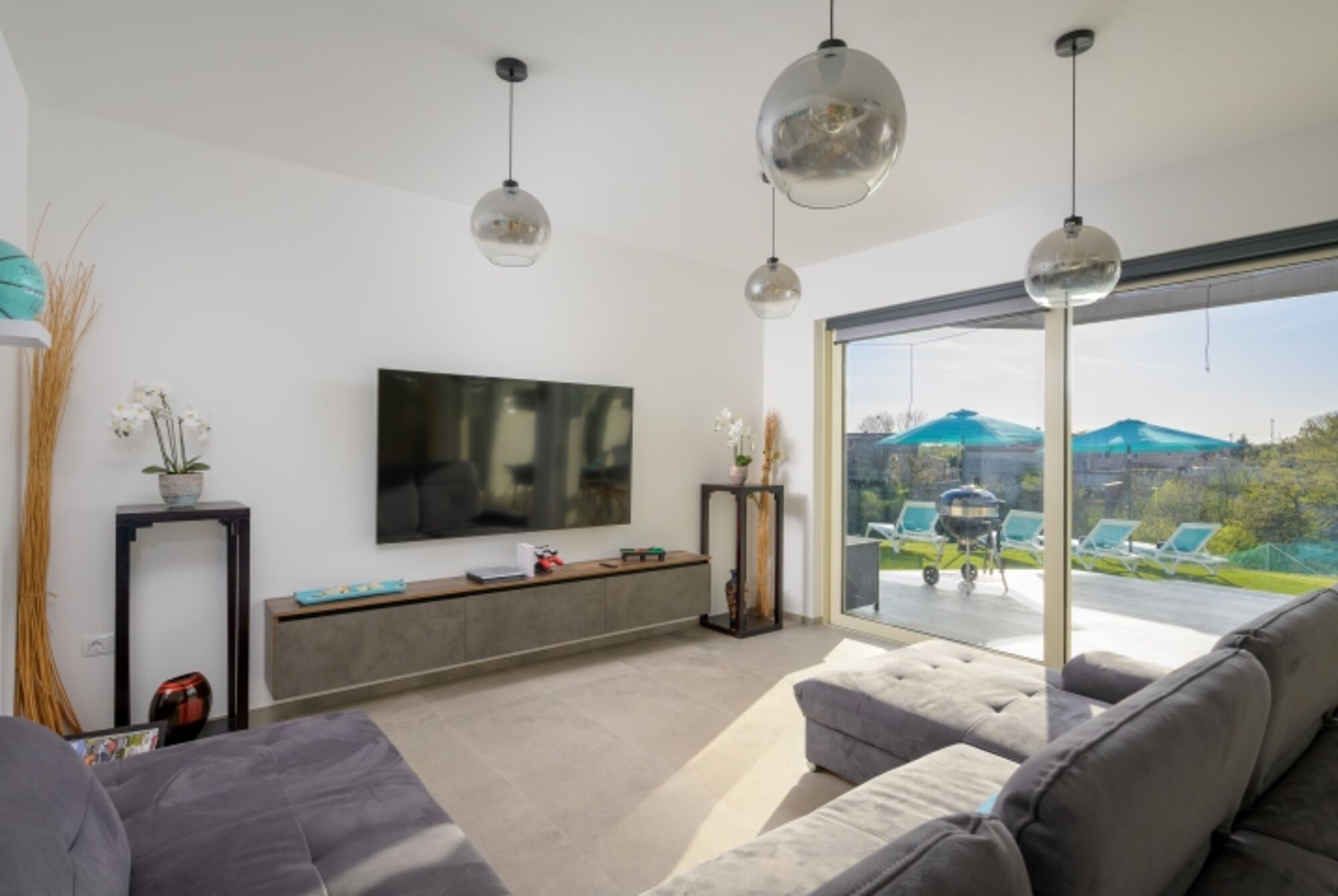 Villa Tiffany ist eine moderne Ferienvilla im ländlichen Teil Istriens, nur 1,5 km vom historischen Ort Svetvinčenat und etwa 15 km vom nächsten Strand entfernt. Mit ihrer eleganten Ausstattung und funktionalen Raumaufteilung ist sie ideal für Familien oder Freundesgruppen, die Komfort und Privatsphäre suchen.