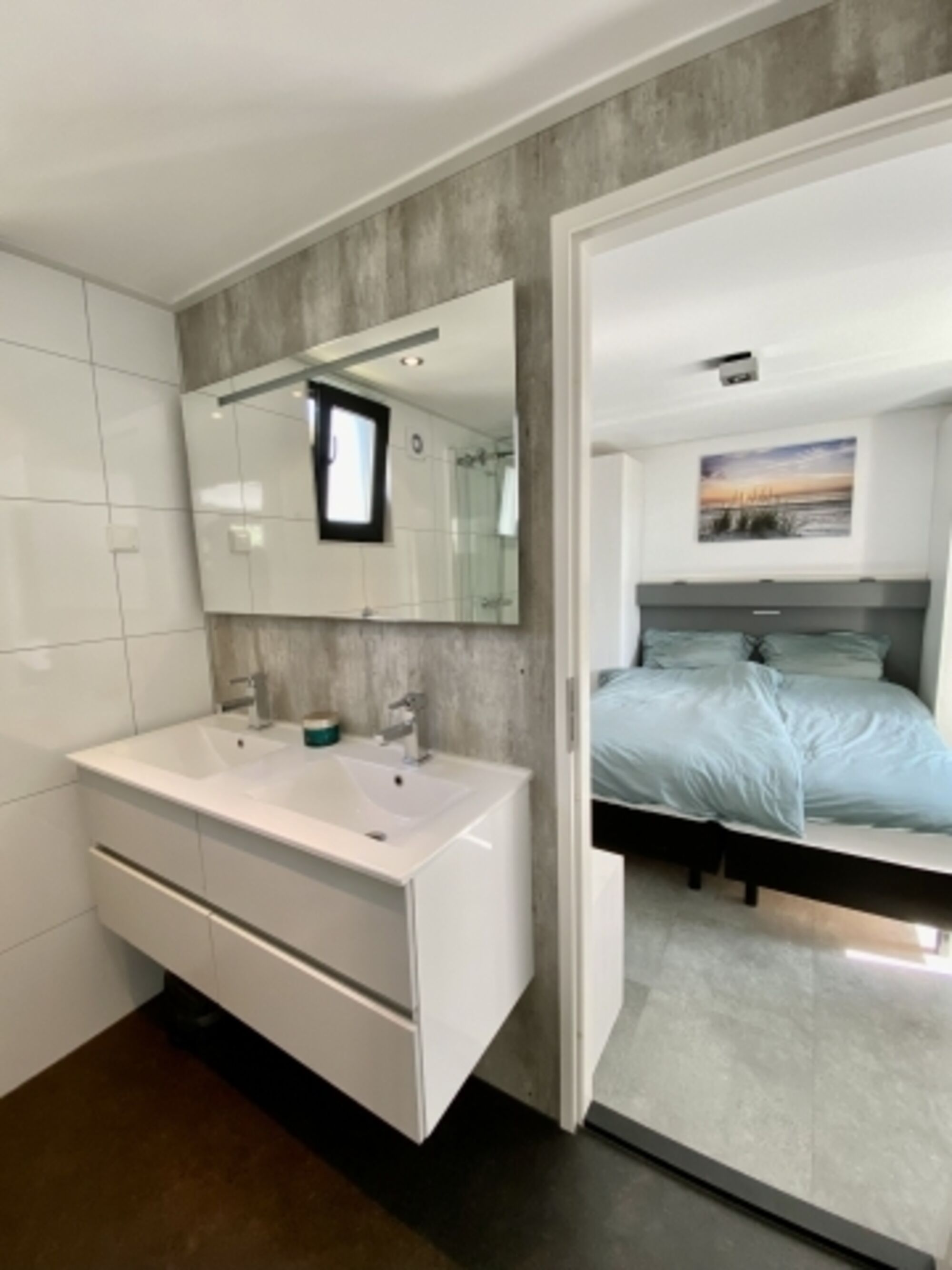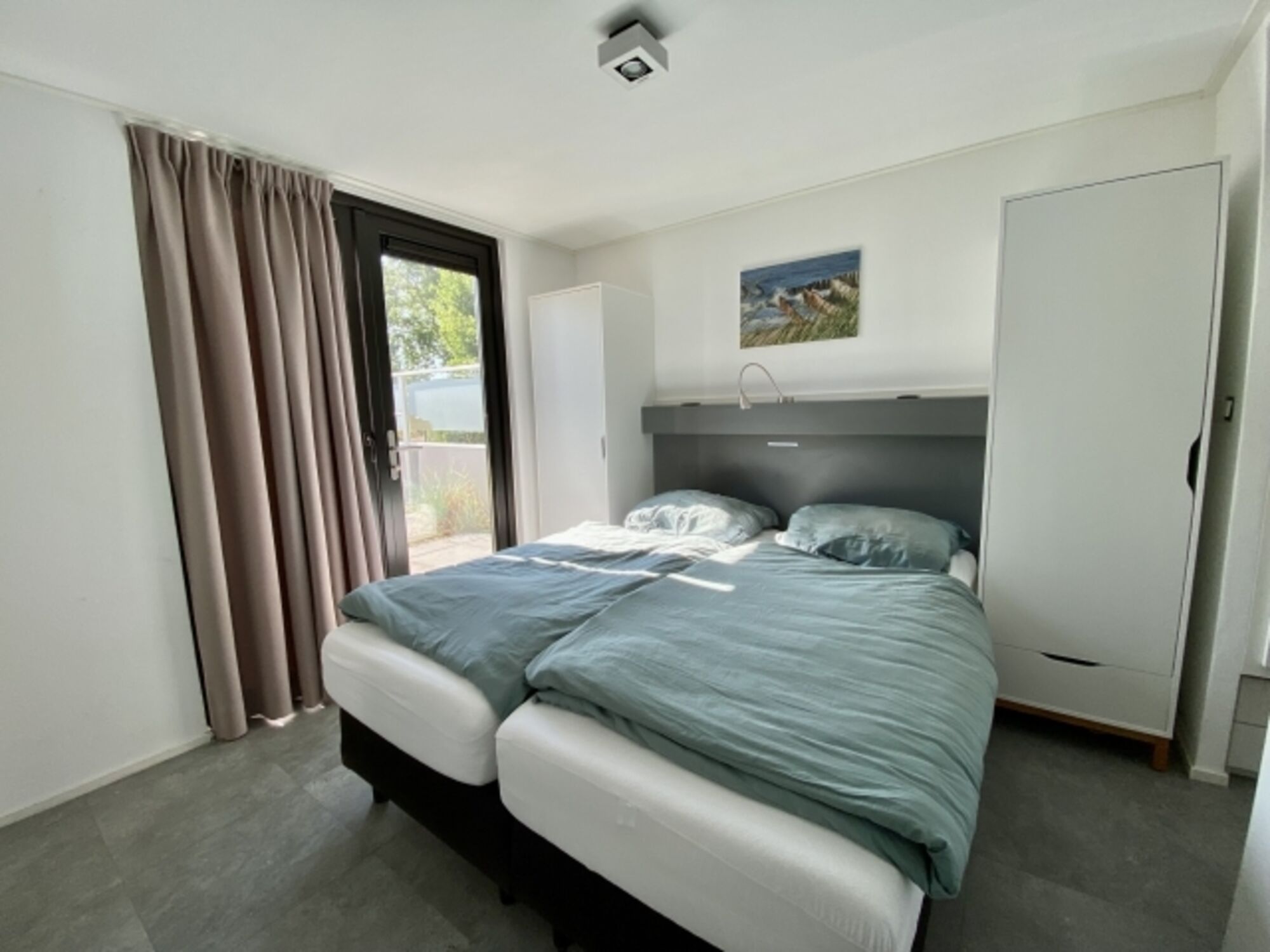 Das Ferienhaus hat 2 separate Schlafzimmer (eines mit TV). Beide Schlafzimmer haben jeweils ein Doppelbett mit zwei Matratzen (Matratzengröße: 80 cm x 200 cm).