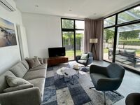 Tolles, modernes Chalet 'Strandleben' mit Zaun, Lounge & großem Garten