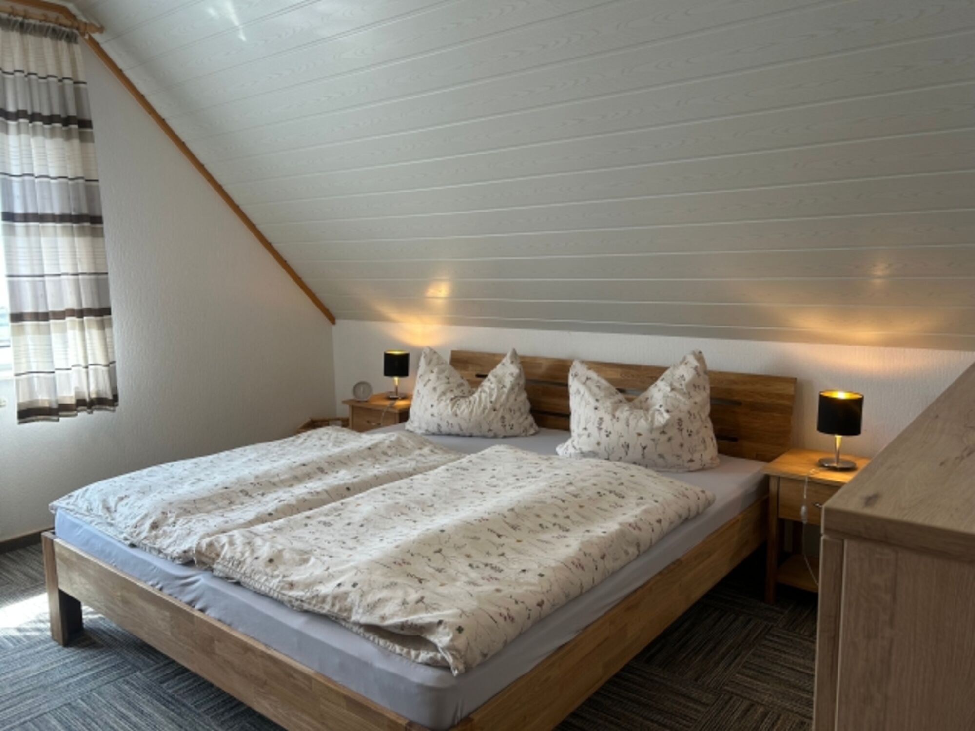 Doppelbett 1,80 x 2,00m, Kommode, Wecker, Spiegel, Fliegengitter