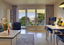 Unsere Ferienwohnungen liegen eingebettet in eine gepflegte Grünanlage und bieten Ihnen moderne Ausstattung sowie vielfach Meerblick. Alle Unterkünfte verfügen über einen Wohn-/Essbereich mit Schlafmöglichkeit, separate Schlafzimmer, eine voll ausgestattete Küchenzeile, Dusche/WC, TV, Radio, Telefon, kostenfreies Highspeed-WLAN und einen Balkon oder eine Terrasse.