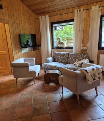 Wer eine ruhige Unterkunft sucht, ist bei uns im Hunsrück gut aufgehoben. Das Waldhäuschen ist eins von zwei Häusern auf einem 8000 qm großen Grundstück mitten im Nationalpark Hunsrück-Hochwald. Ihr bewohnt das hintere Haus mit eigenem, ca 500 qm großen, 1,5 m hoch eingezäunten Garten (Staketenzaun und Doppelstabmattenzaun).. Vorn im kleineren Gebäude wohnen wir. Zufahrt und Hof (PWK-Stellplätze) teilen wir uns. Eure Hunde können sich in Eurem Garten absolut frei bewegen. Nachts hört Ihr Käuzchen, Wildschweine, Füchse und Rehe, teilweise direkt am Zaun. Das gesamte Grundstück ist mit einem 2 m hohen Doppelstabmattenzaun lückenlos gesichtert. Sollte Euer Hund also aus Versehen aus Eurem privaten Gartenbereich ausbüxen kann er trotzdem das Grundstück nicht verlassen. WLAN und TV sind vorhanden. Für weitere Infos stöbert einfach auf unserer Homepage. Preis inkl. Nebenkosten 600 EU/ Woche, Hunde kostenlos. Eine Begrenzung der Rudelgröße haben wir nicht.