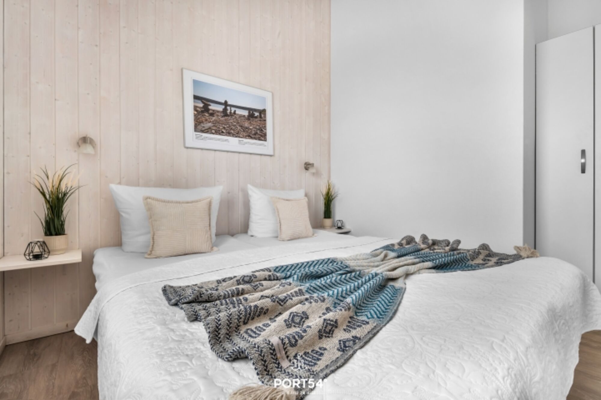 Das Schlafzimmer lädt mit zwei zusammengeschobene Einzelbetten (zusammen 180x200cm) zu erholsamen Nächten ein. Natürliche Materialien und sanfte Farben schaffen eine beruhigende Atmosphäre. Für zusätzliche Gäste steht im Wohnbereich eine ausziehbare Schlafcouch (140 x 190 cm) bereit, die zwei Personen – ideal für Kinder oder Freunde – bequem Platz bietet.
