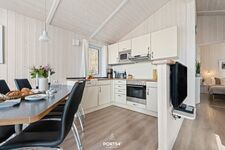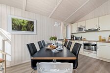 Die voll ausgestattete Wohnküche bietet alles, was Sie für gemeinsame Kochabende benötigen: ein Cerankochfeld, Backofen, Kühlschrank mit Gefrierfach, Mikrowelle und Kaffeemaschine. Der Essbereich lädt zu gemeinsamen Mahlzeiten und geselligen Gesprächen ein.