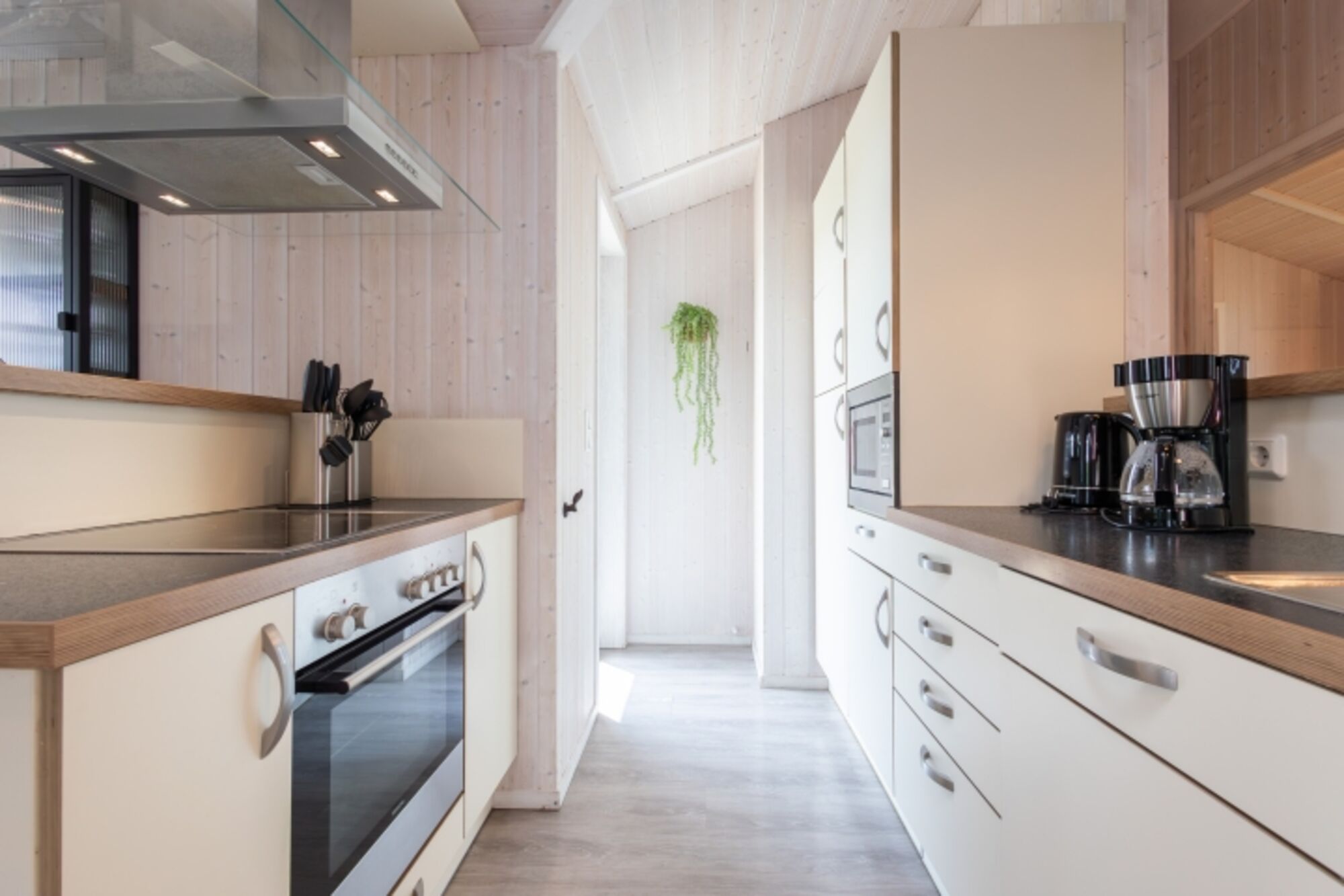 Die voll ausgestattete Wohnküche bietet alles, was Sie für gemeinsame Kochabende benötigen, darunter ein Cerankochfeld, Backofen, Kühlschrank mit Gefrierfach, Mikrowelle und Kaffeemaschine. Der angrenzende Essbereich lädt zu gemeinsamen Mahlzeiten und langen Gesprächen ein.