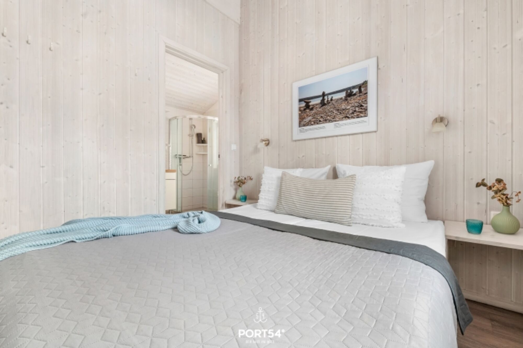 Das Ferienhaus bietet insgesamt 5 Schlafzimmer: vier davon sind mit Doppelbetten (160x 200 cm) ausgestattet, während das fünfte Schlafzimmer mit zwei Einzelbetten (80 x 200 cm) für zusätzlichen Komfort sorgt. So haben sowohl Familien als auch Gruppen von Freunden ausreichend Platz und Privatsphäre. Die Schlafzimmer sind in beruhigenden, natürlichen Farben gehalten und schaffen eine entspannte Atmosphäre für erholsame Nächte.*** Bettwäsche und Handtücher können optional hinzu gebucht werden***