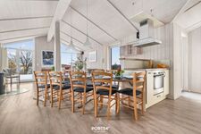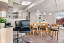Die voll ausgestattete Wohnküche bietet alles, was Sie für gemeinsame Kochabende benötigen, darunter ein Cerankochfeld, Backofen, Kühlschrank mit Gefrierfach, Mikrowelle und Kaffeemaschine. Der angrenzende Essbereich lädt zu gemeinsamen Mahlzeiten und langen Gesprächen ein.