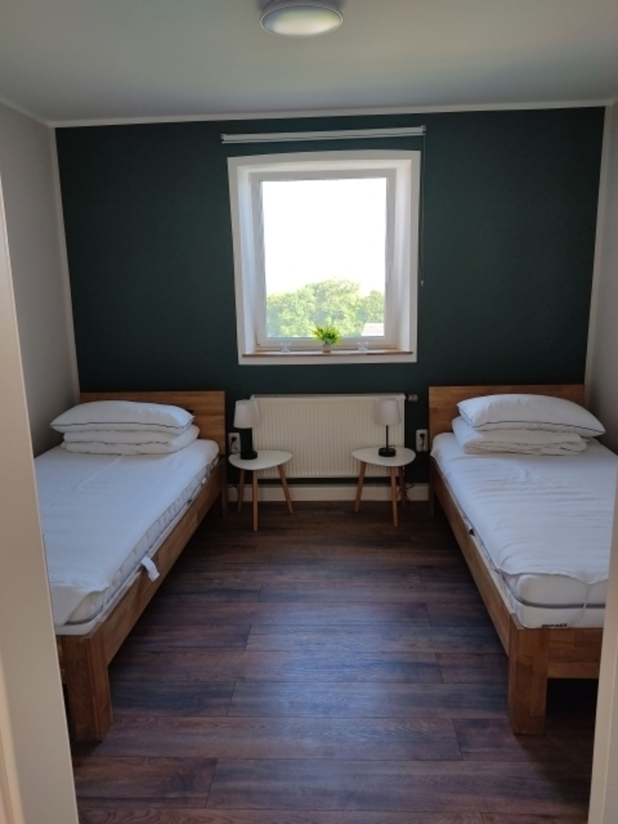 2 Einzelbetten können auch zusammengestellt werden Einzelbett, Kommode, Leselampe am Bett