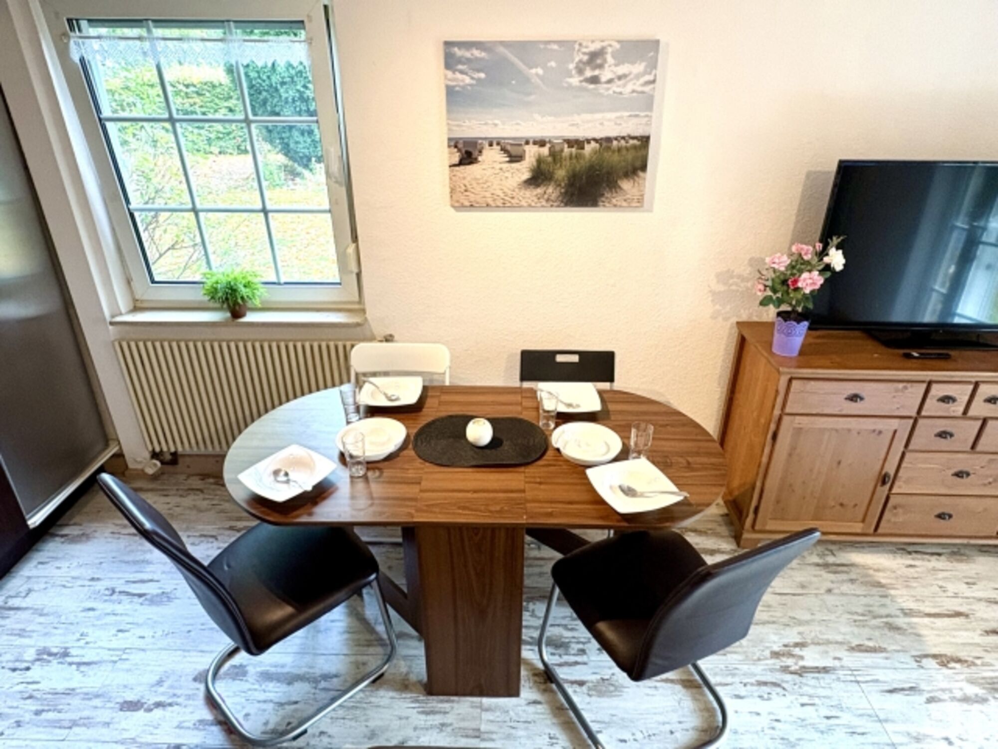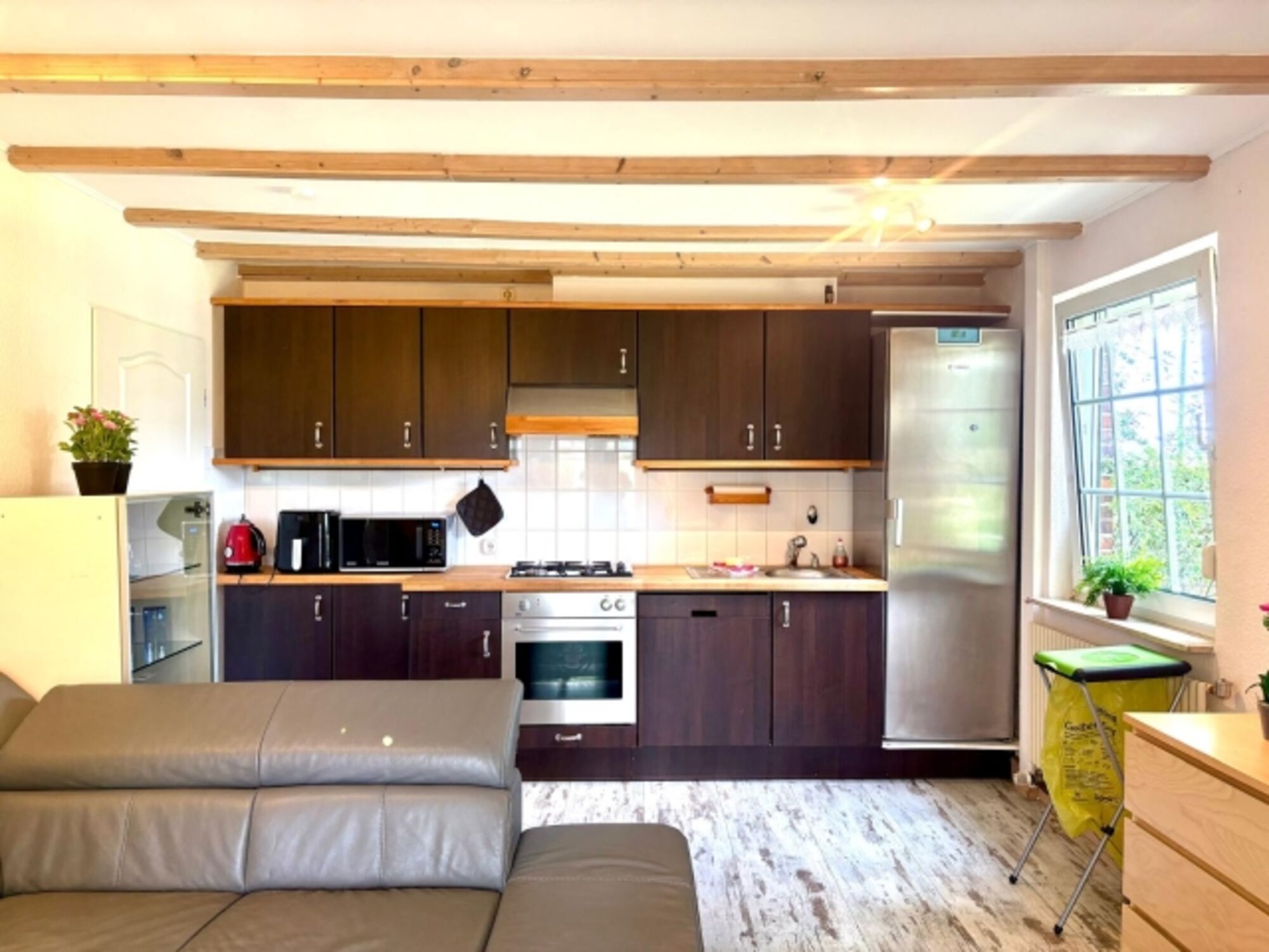 4-Platten Herd, Gasofen / Gasherd, Dunstabzugshaube, Kühlschrank mit Gefrierfach, Tassimo-Kaffeautomat, Gewürze (Salz, Pfeffer, Zucker), Öl / Essig, Geschirrhandtücher, Mülltüten, Essplatz in der Küche, TV in der Küche