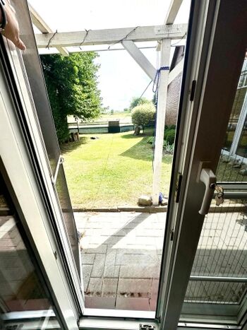 Waschbecken, Spiegel, Fenster im Bad, Fliegengitter