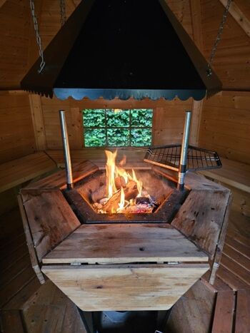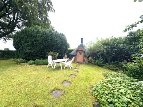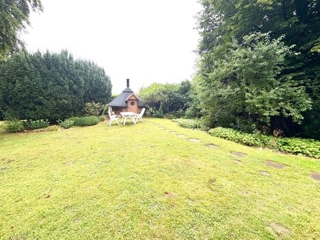 Liegewiese, Gartenmöbel, Kohlegrill, Holzgrill, Hof