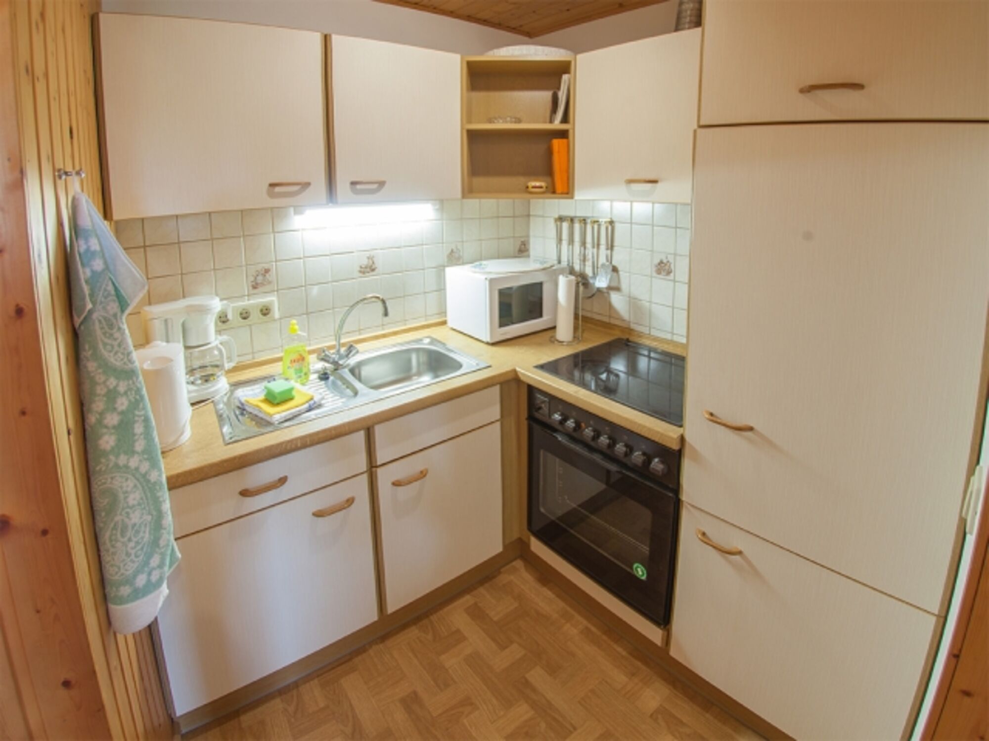 4-Platten Herd, Cerankochfeld, Kühlschrank mit Gefrierfach, Eierkocher, Mixer, Korkenzieher / Flaschenöffner, Geschirrhandtücher, Mülltüten