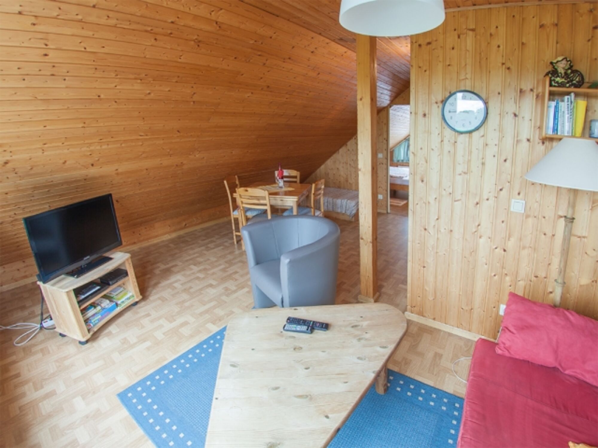 Die Ferienwohnung Strebel in der Urlaubsregion Nordsee-Jadebusen möchte sich vorstellen. Zentral liegt sie an der Hauptstr. 65 in Bockhorn-Grabstede in einem separaten Anbau. Hier führt eine Holztreppe ins gemütliche Obergeschoß.
