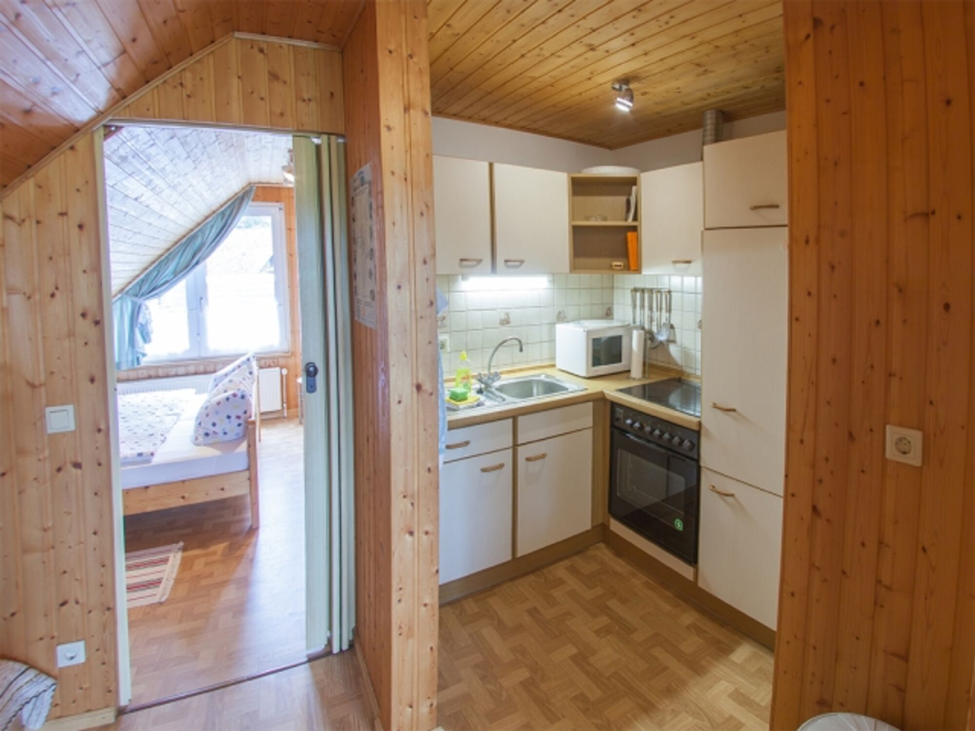 Durch die Diele gelangen Sie in den Wohnraum mit Essplatz und integrierter, gut ausgestatteter Küchenzeile. Hier befindet sich auch der Ausgang zum großen Balkon mit freiem Blick auf Felder und Wiesen. Weiter geht es in den behaglichen Schlafraum mit Doppelbett. Vom Schlafzimmer gelangen Sie direkt ins helle geräumige Duschbad mit Fenster.